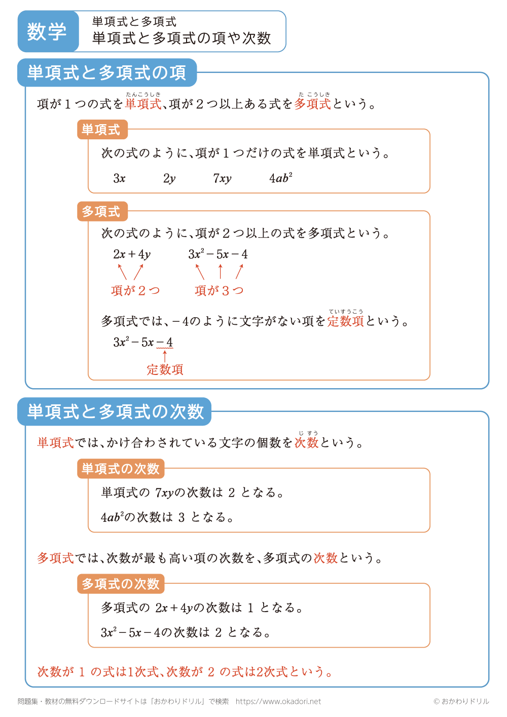 「おかわりドリル」は小学生・中学生向けのオリジナル問題プリントと学習コンテンツを、無料で提供しています。