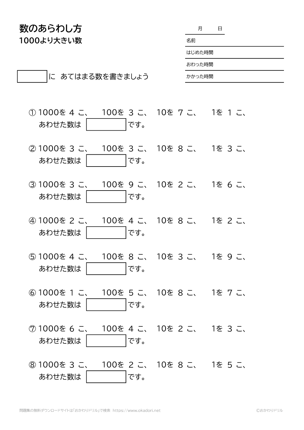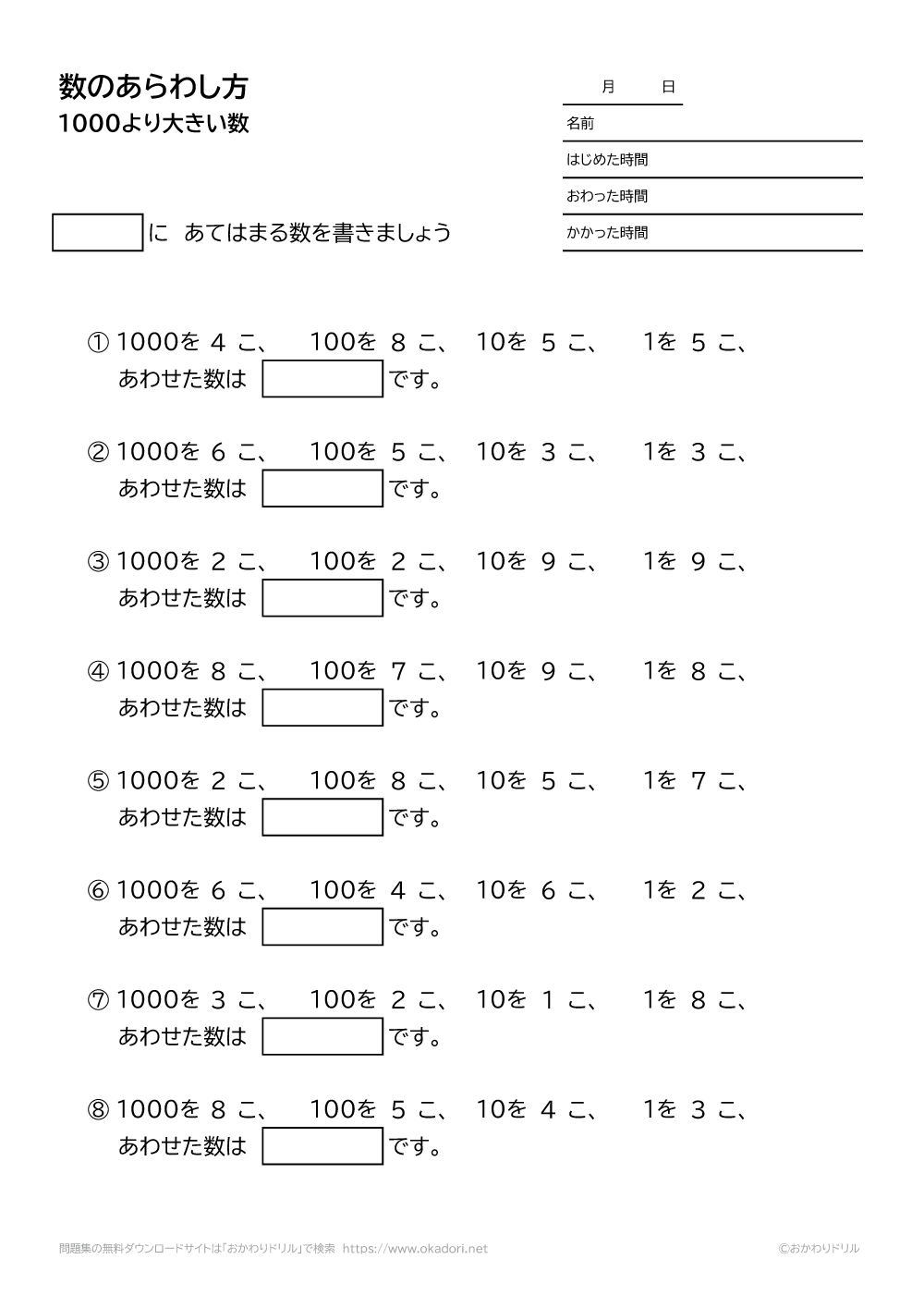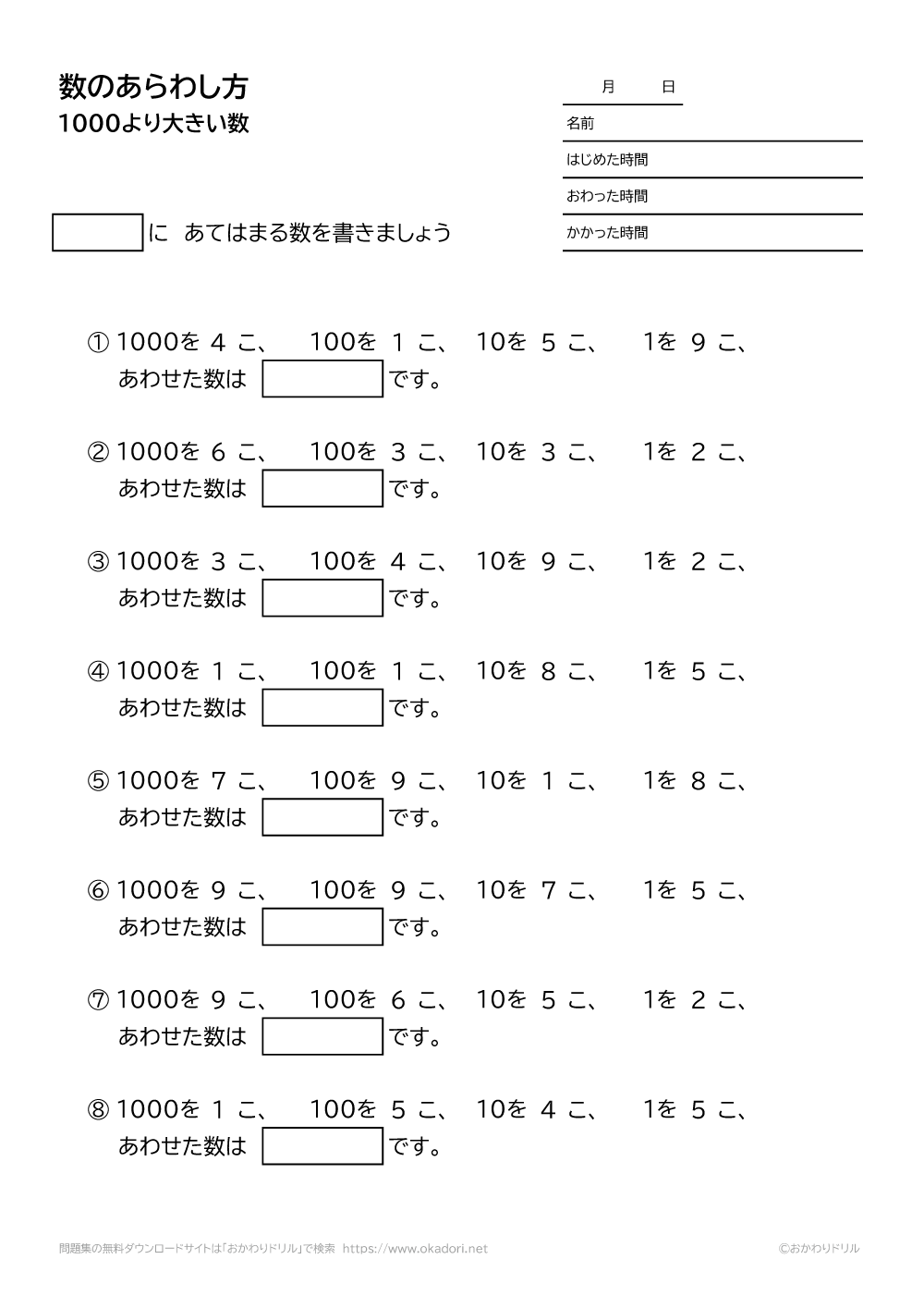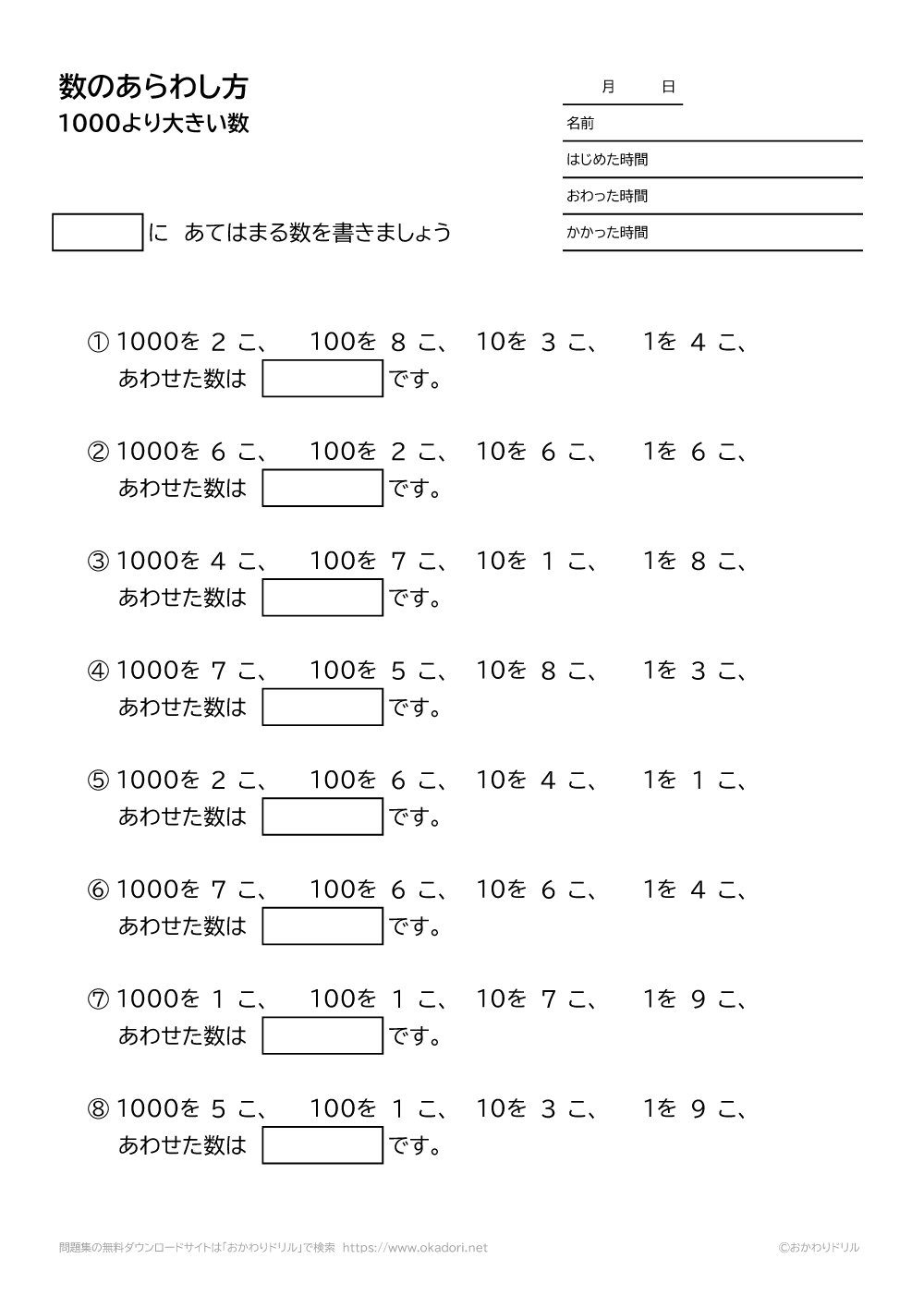 1000より大きい数のあらわし方の問題を解いてみよう!