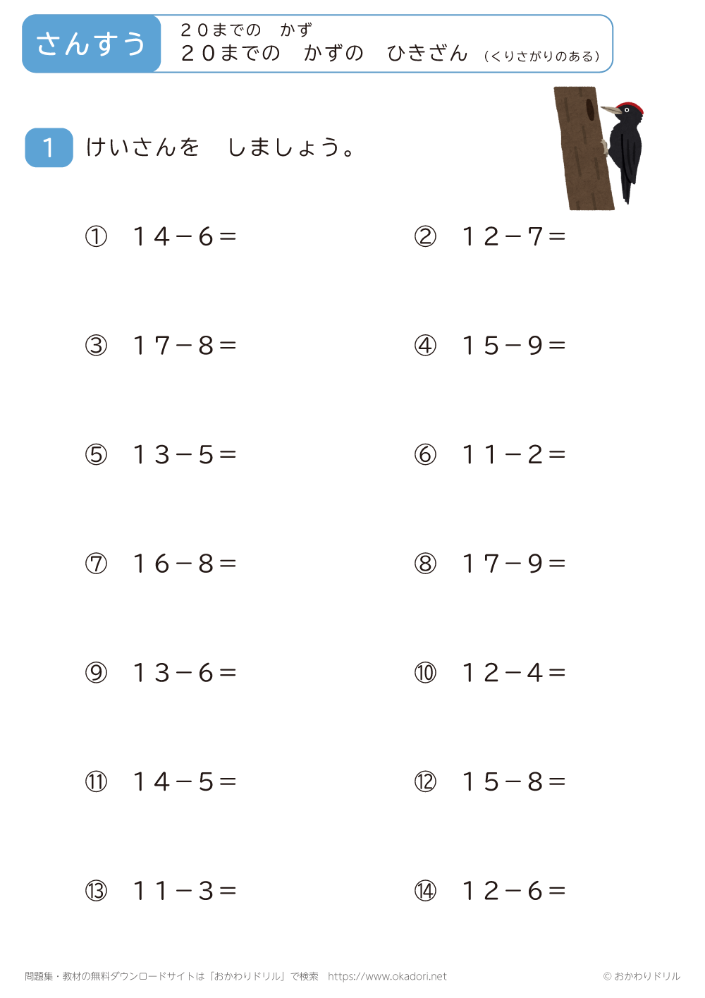 このページは、小学1年生で習う「20までの数の引き算(くり下がりのある)」が学習 ...