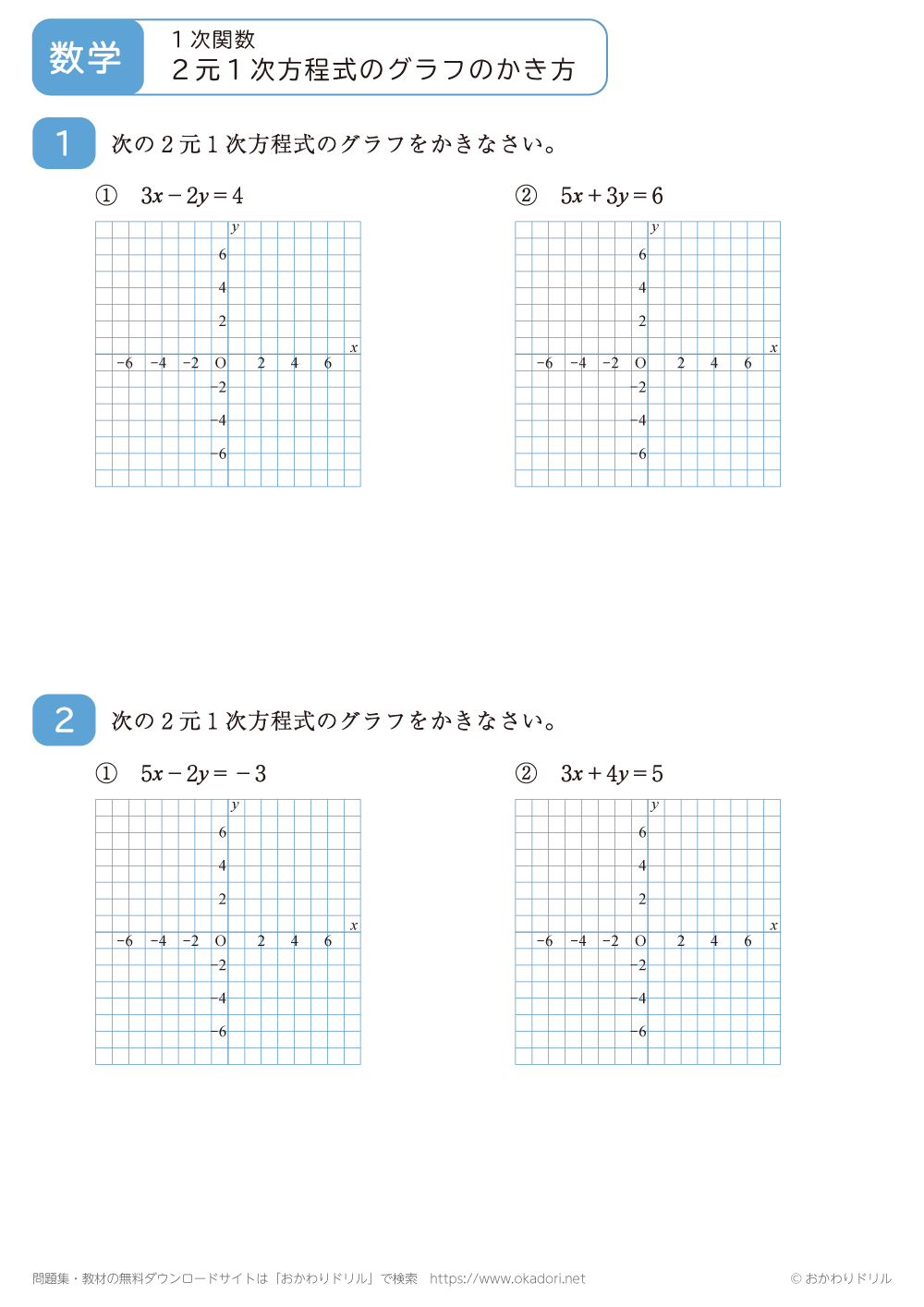 このページは、中学2年生で習う「2元1次方程式のグラフのかき方」が学習できるページです。