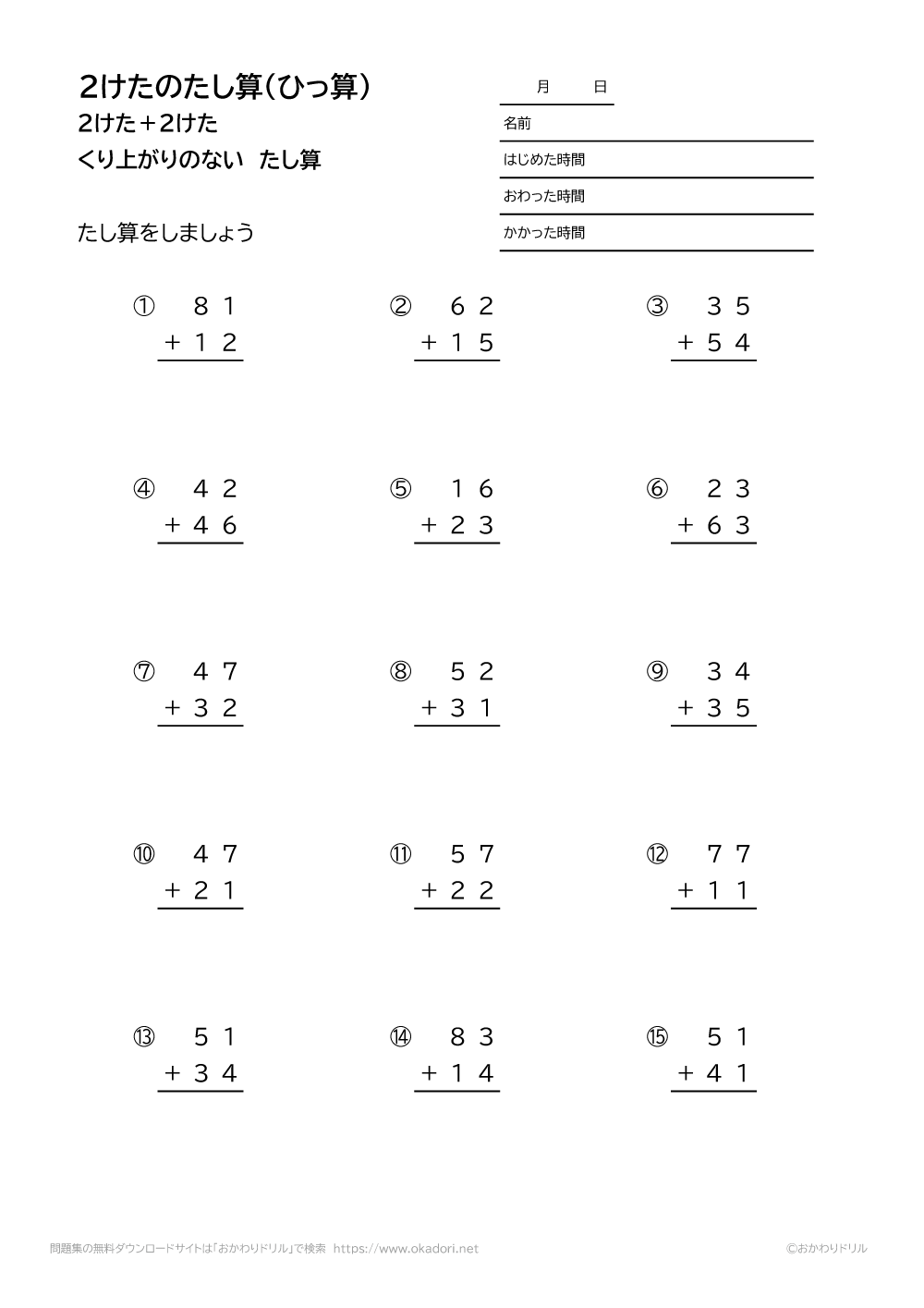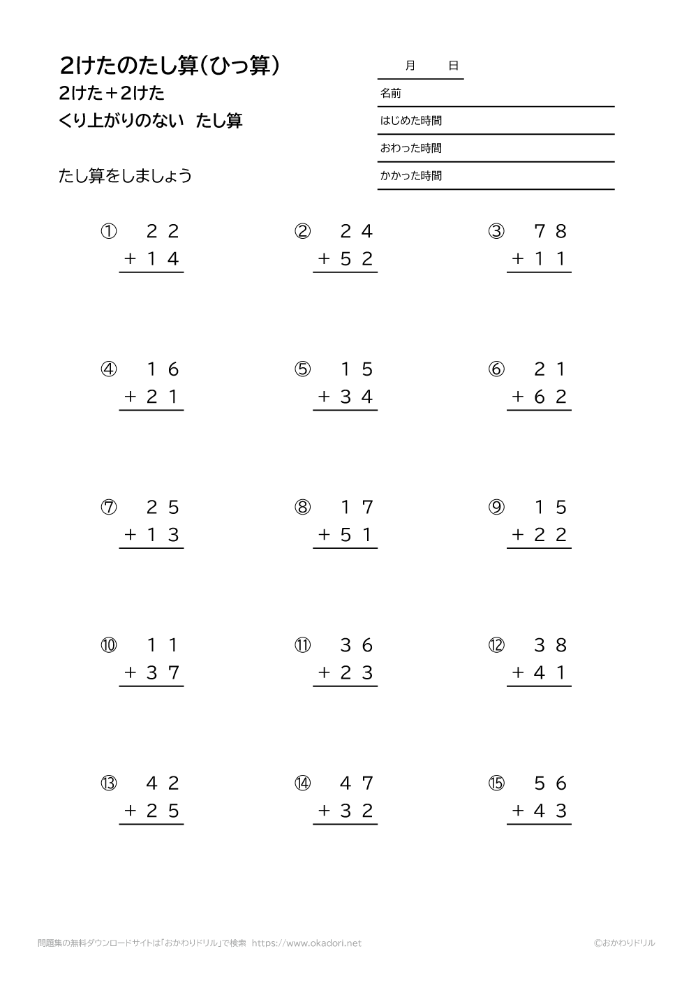 このページは、小学2年生で習う「2桁+2桁の足し算の筆算(くり上がりのない)」が ...