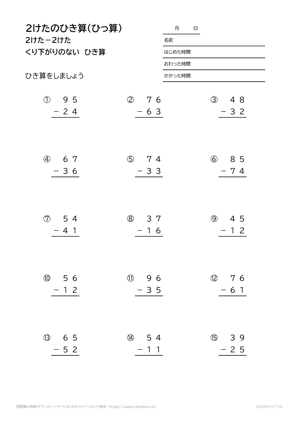 このページは、小学2年生で習う「2桁の引き算の筆算(くり下がりのない)」が学習で ...