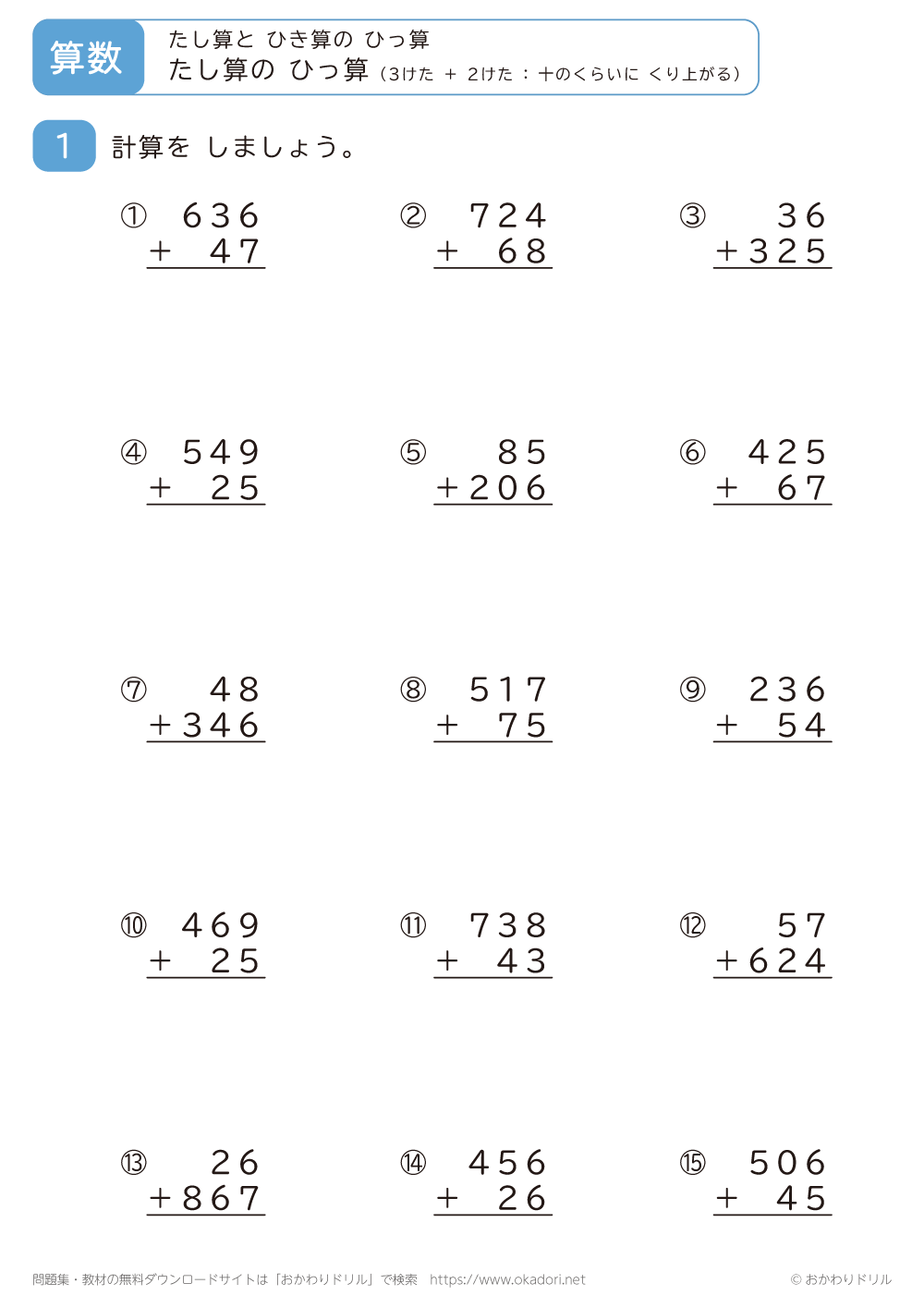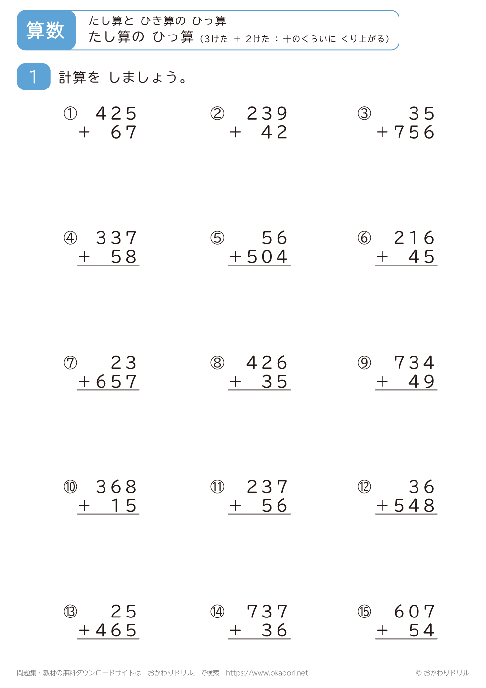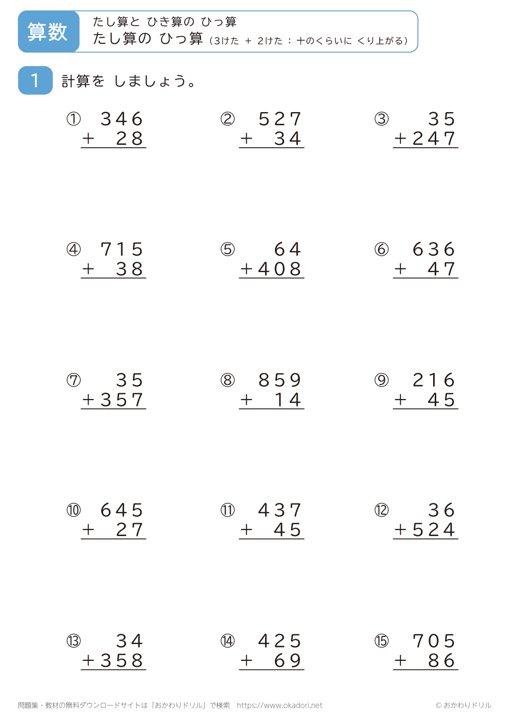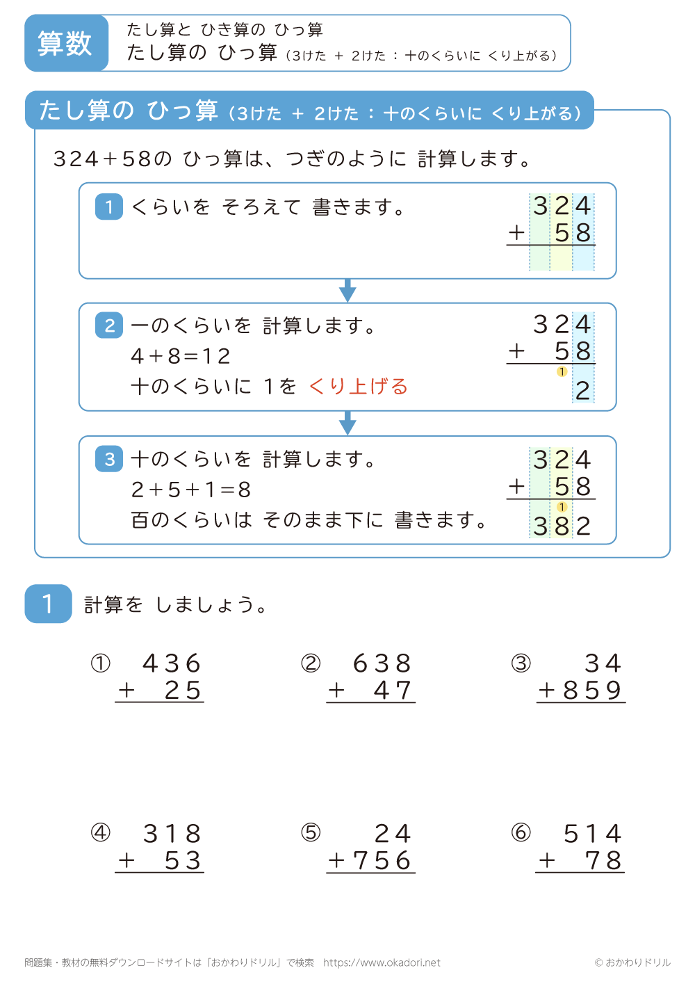 このページは、小学2年生で習う「3桁+2桁の足し算の筆算(くり上がりのない)」が ...