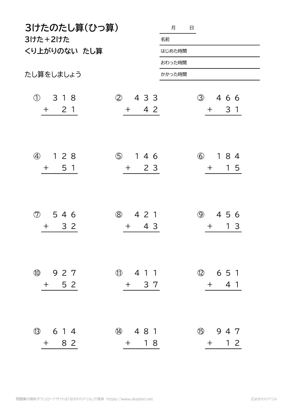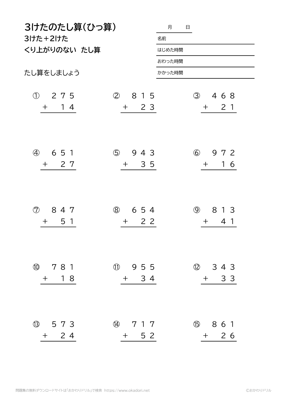 このページは、小学2年生で習う「3桁+2桁の足し算の筆算(くり上がりのない)」が ...