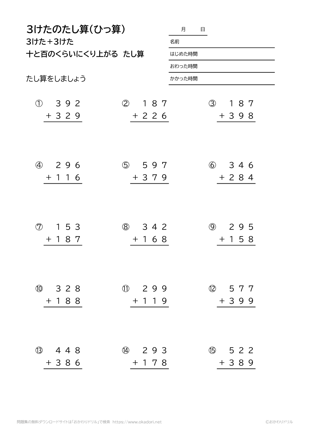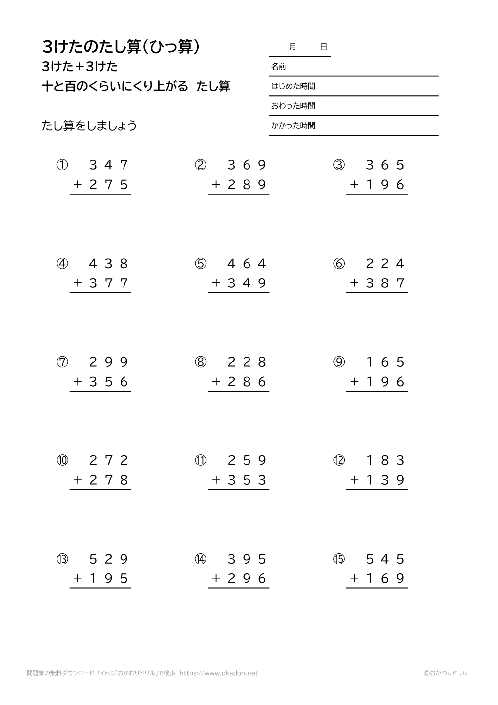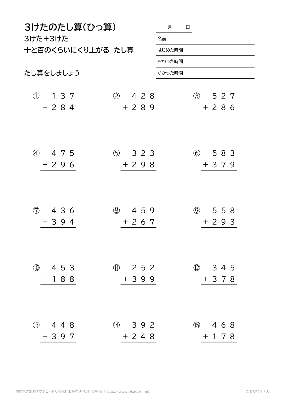 このページは、小学3年生で習う「3桁の足し算の筆算(くり上がりが2回ある)」が学 ...
