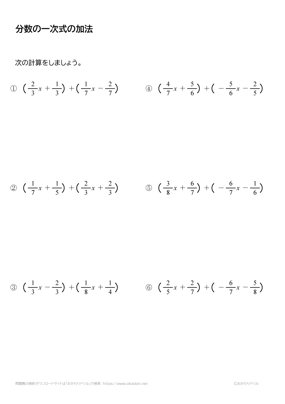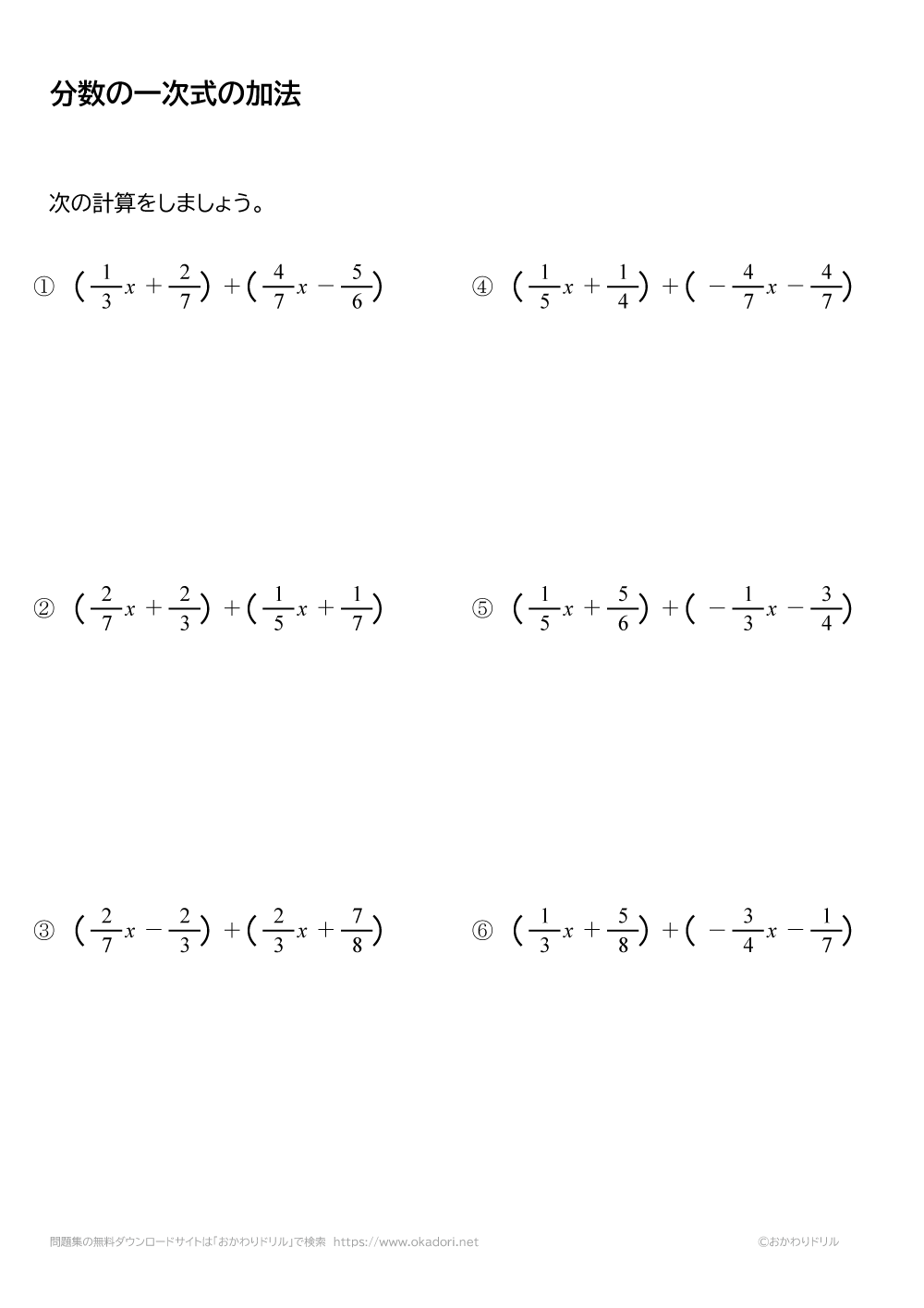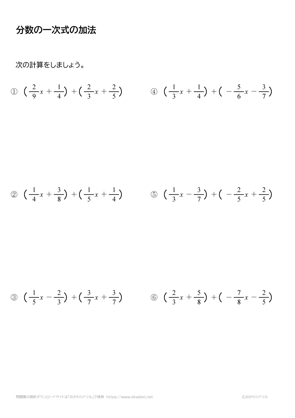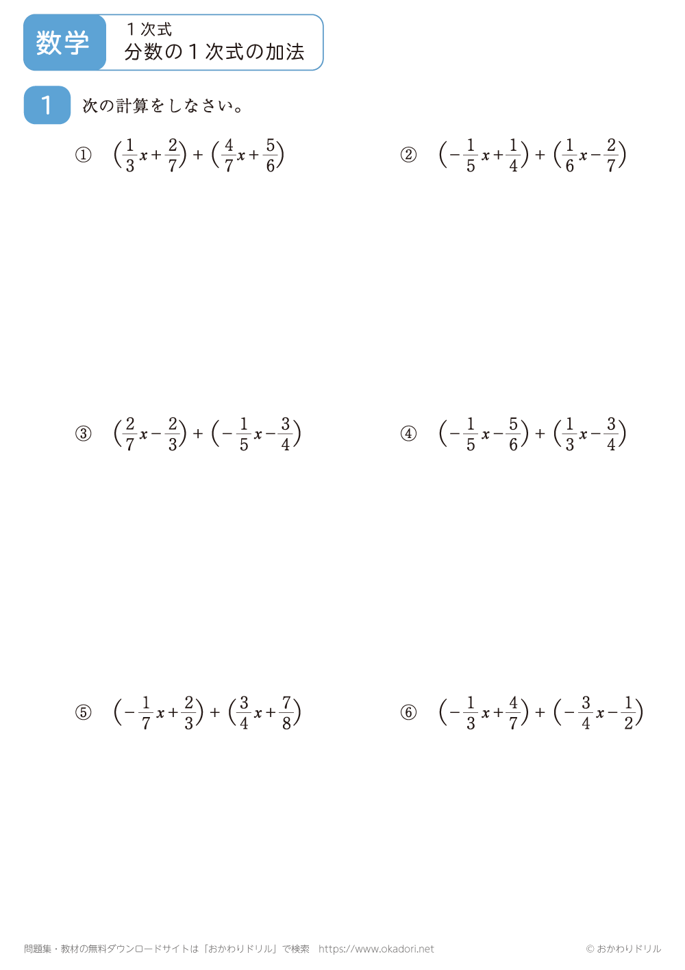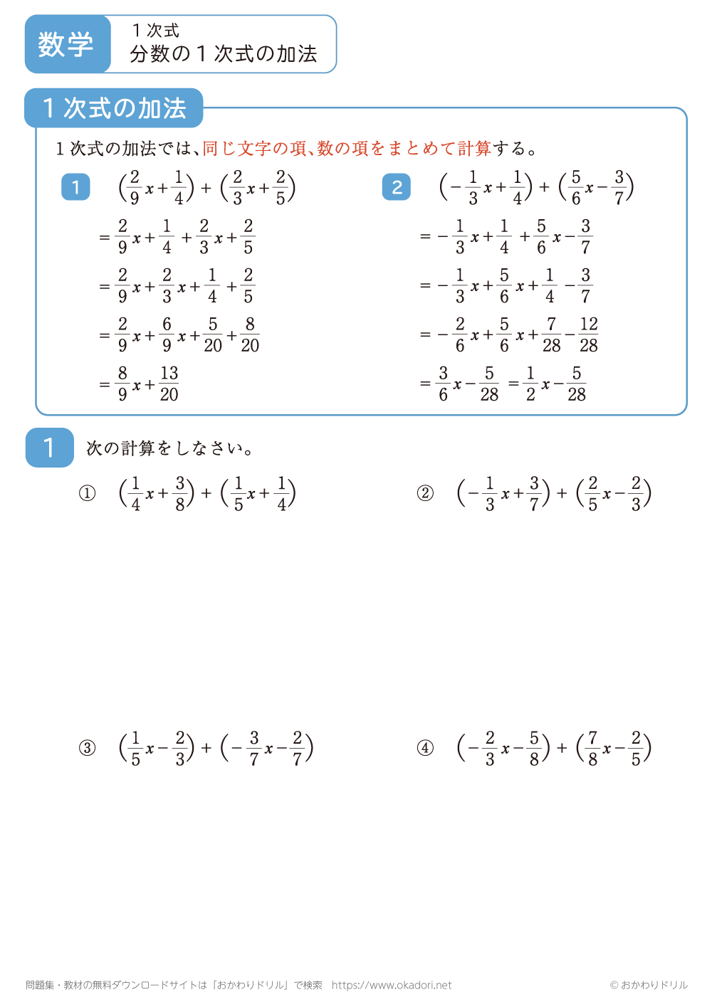 このページは、中学1年生で習う「分数の1次式の加法・減法」が学習できるページです ...