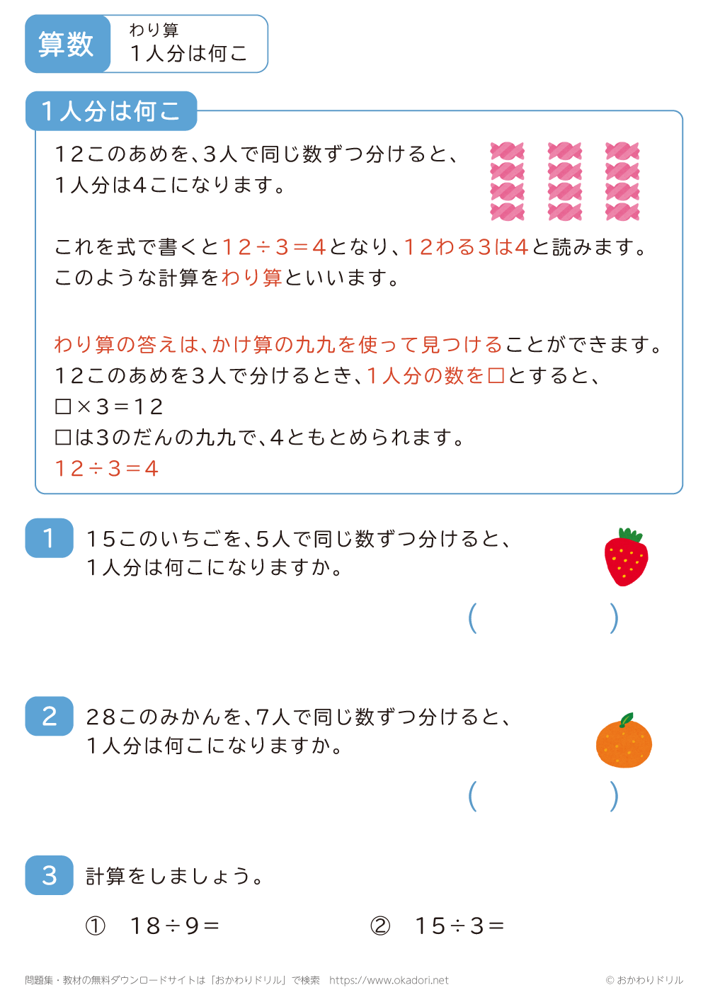 小学3年生|算数|無料問題プリント一覧 - おかわりドリル