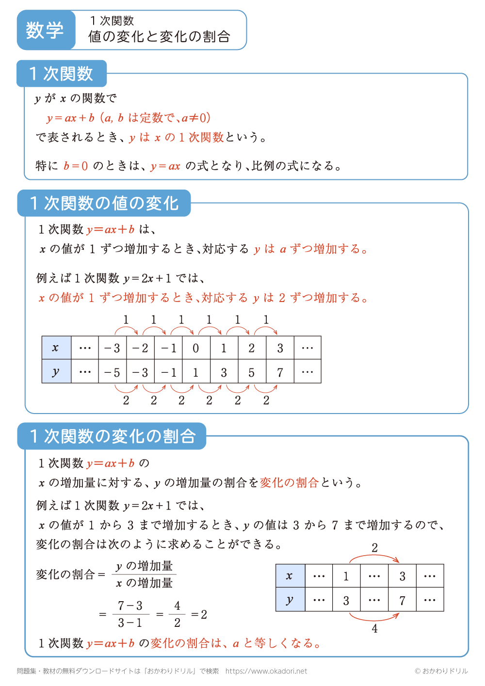 このページは、中学2年生で習う「1次関数の値の変化と変化の割合」が学習できるペー ...
