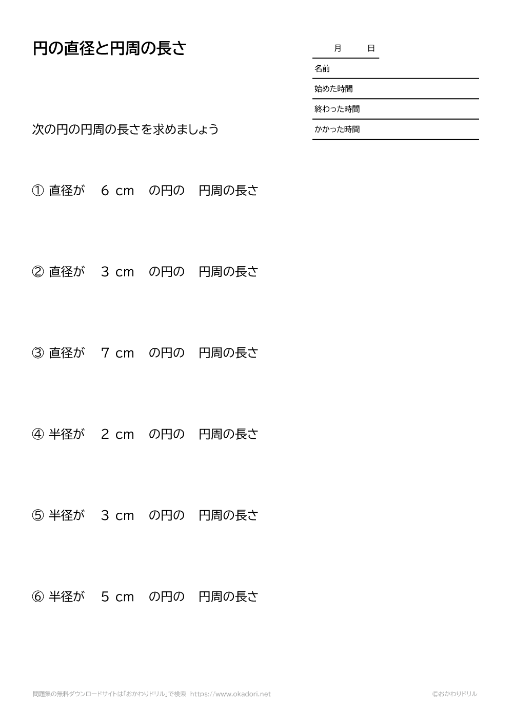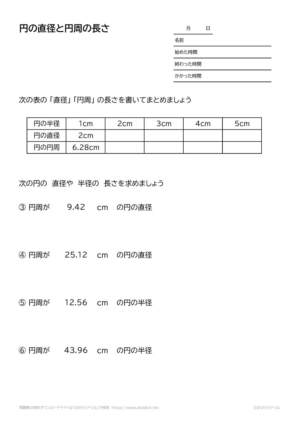 ・円の円周の長さは「直径×円周率(3.14)」で求めることができます。