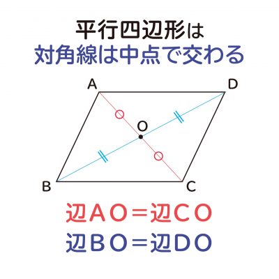 ここで、三角形AMOと三角形BMOは、3辺の長さが全て同じなので、合同な三角形になっています。△AMO≡△BMO
