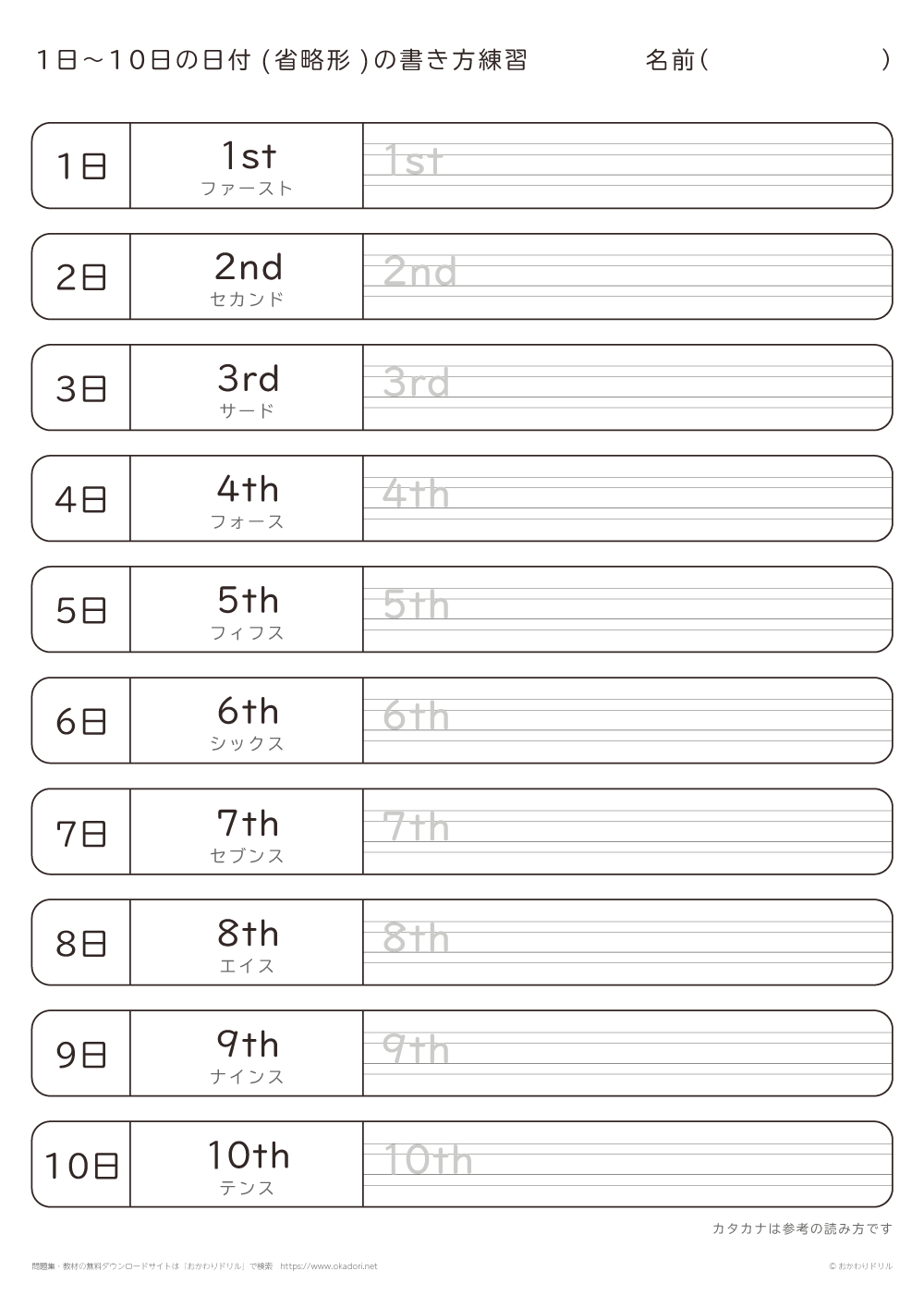 10~100の英単語の書き方の練習に利用して下さいね