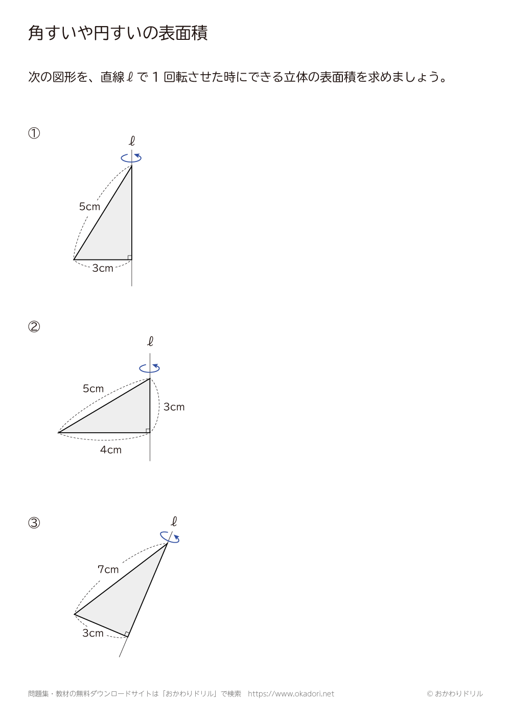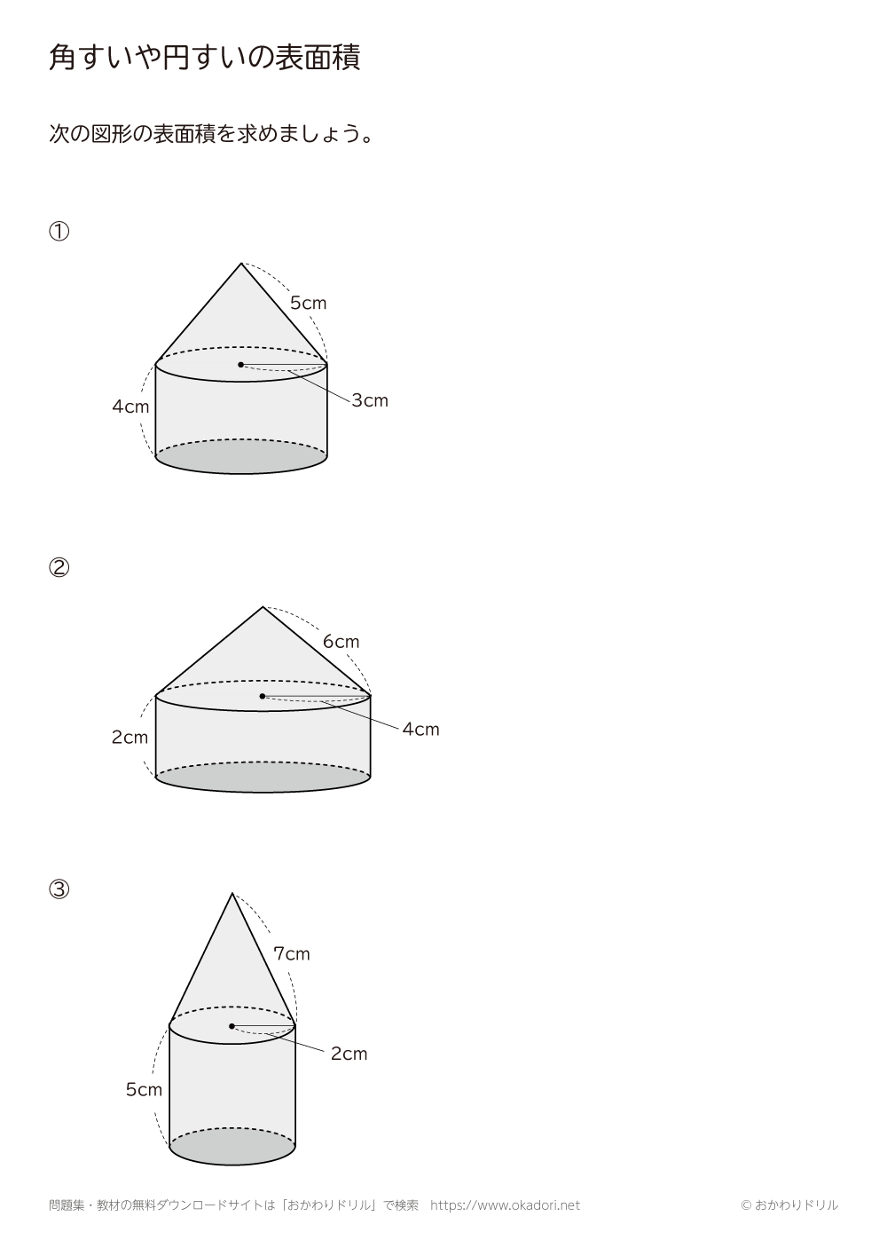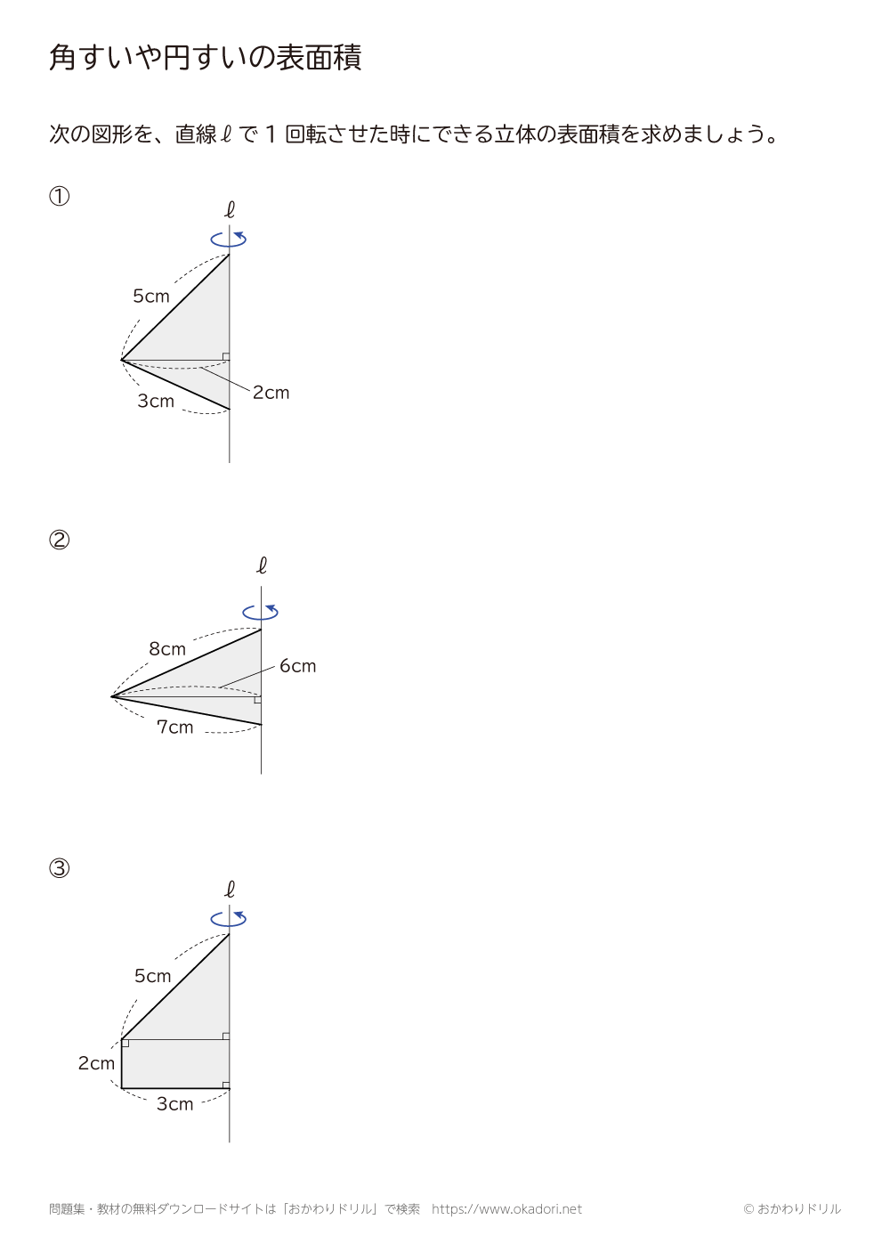 このページは、中学1年生で習う「角すいや円すいの表面積」が学習できるページです。 ...