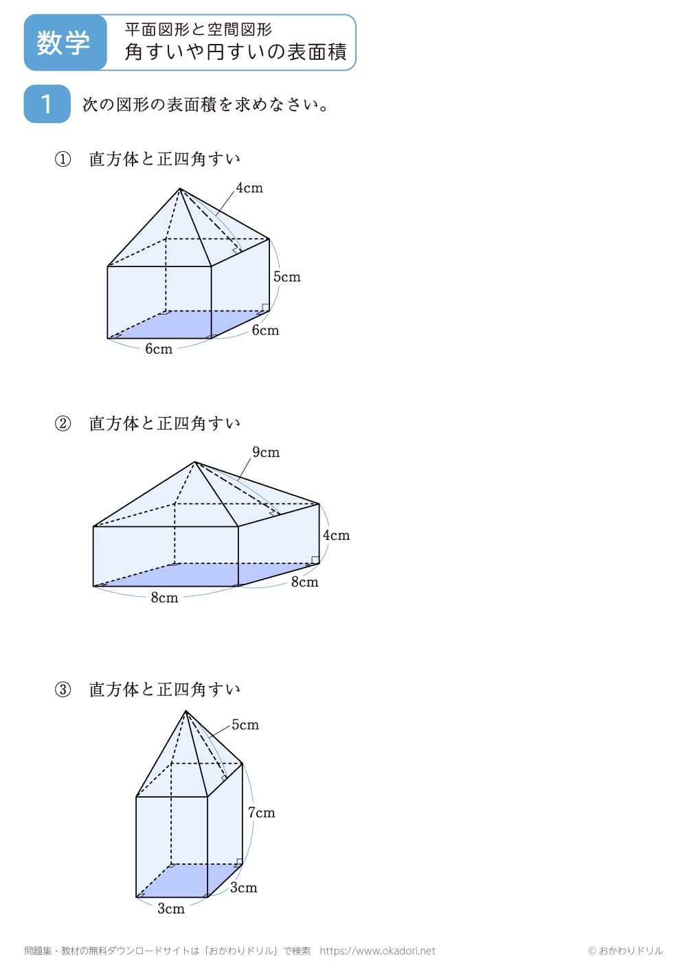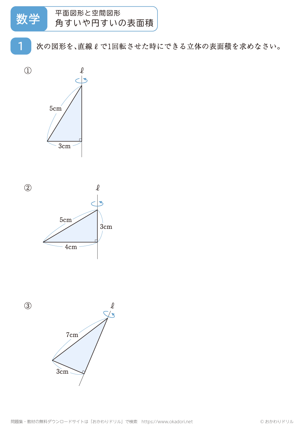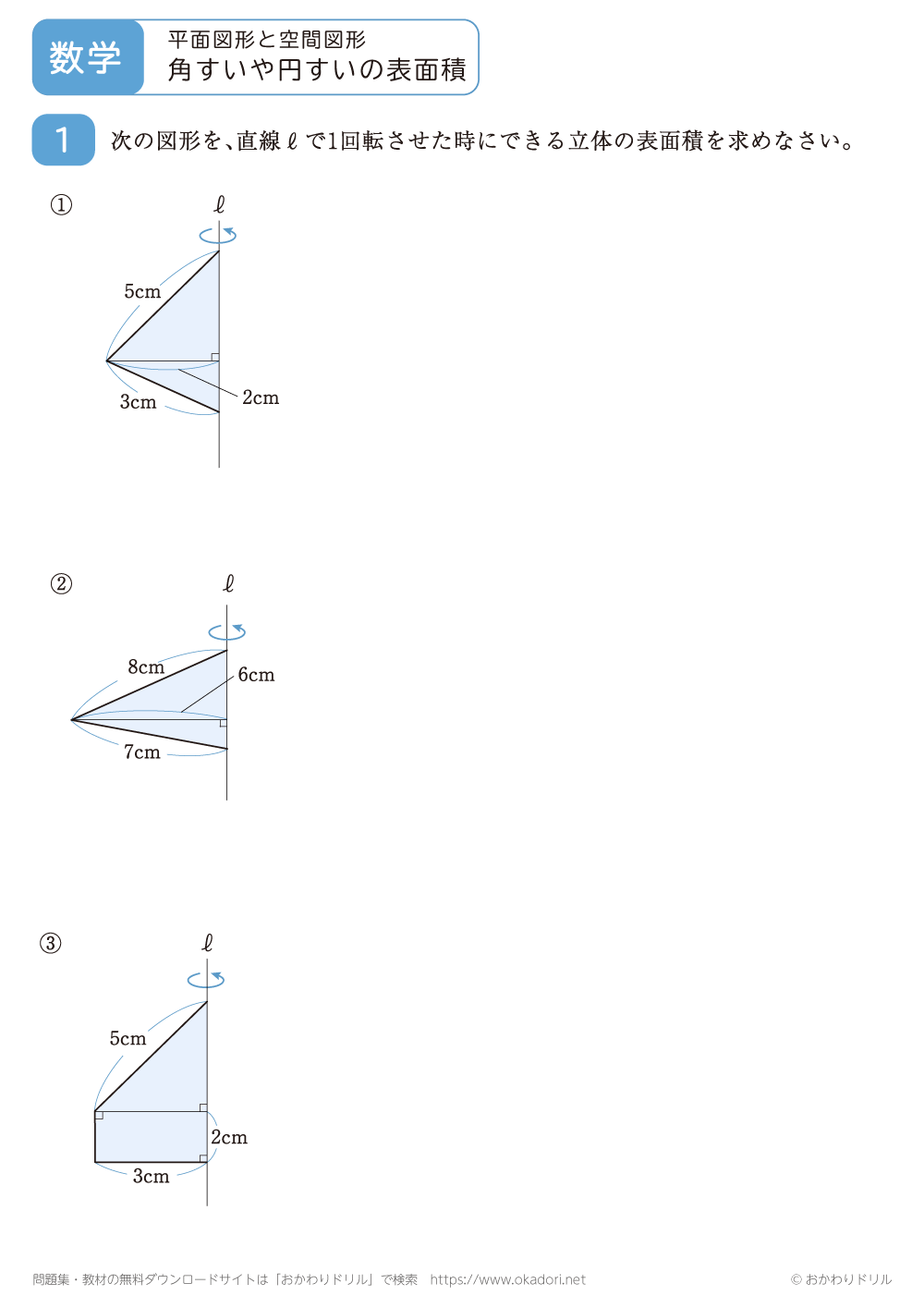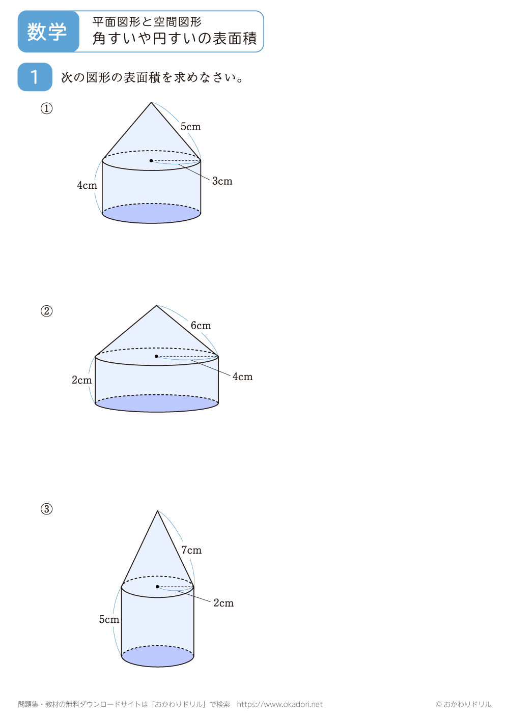 このページは、中学1年生で習う「角すいや円すいの表面積」が学習できるページです。 ...