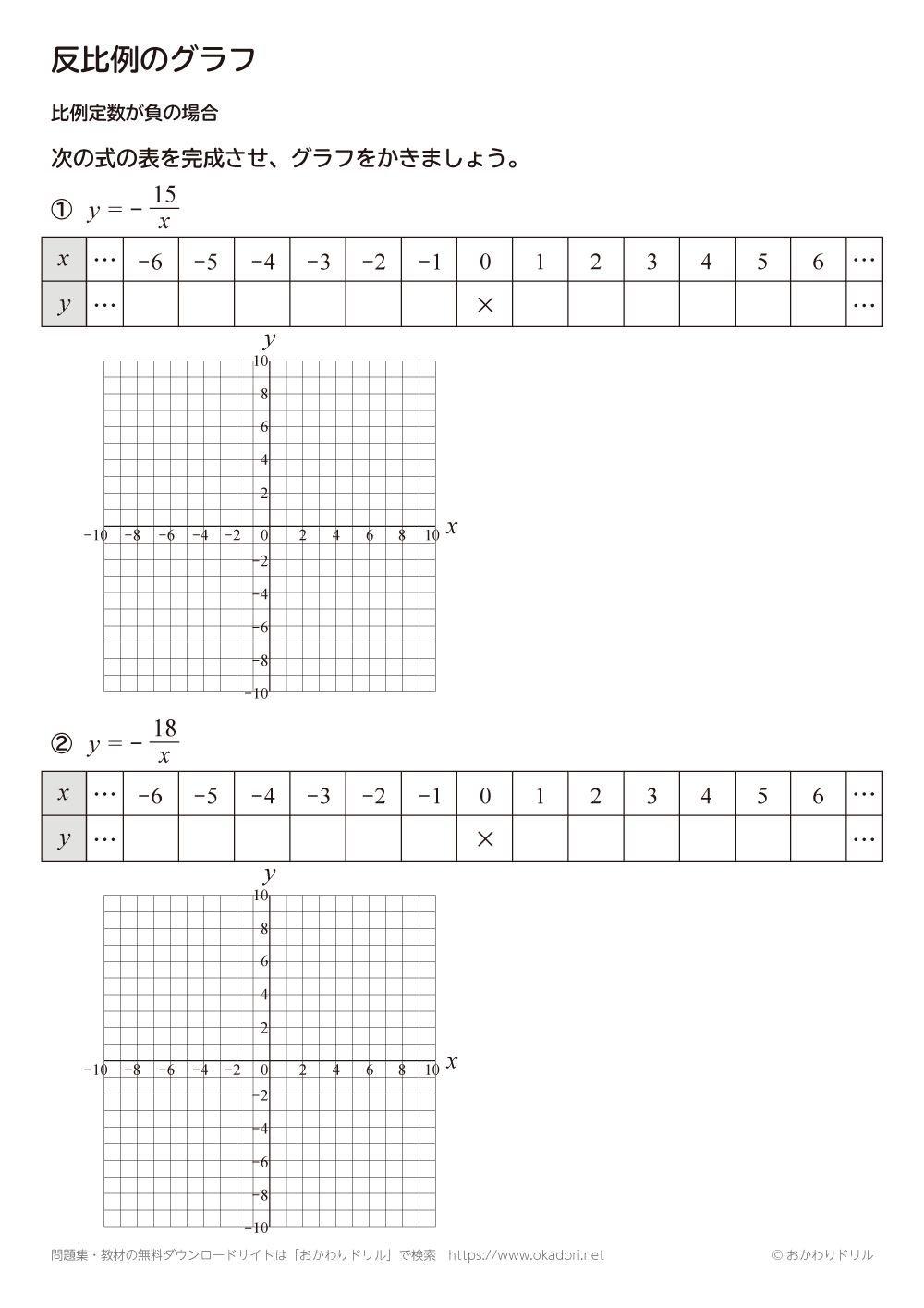このページは、中学1年生で習う「反比例のグラフ:比例定数が正と負の数」が学習でき ...