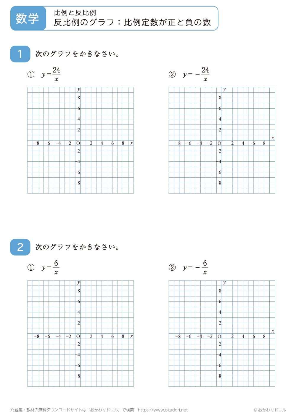 このページは、中学1年生で習う「反比例のグラフ:比例定数が正と負の数」が学習でき ...