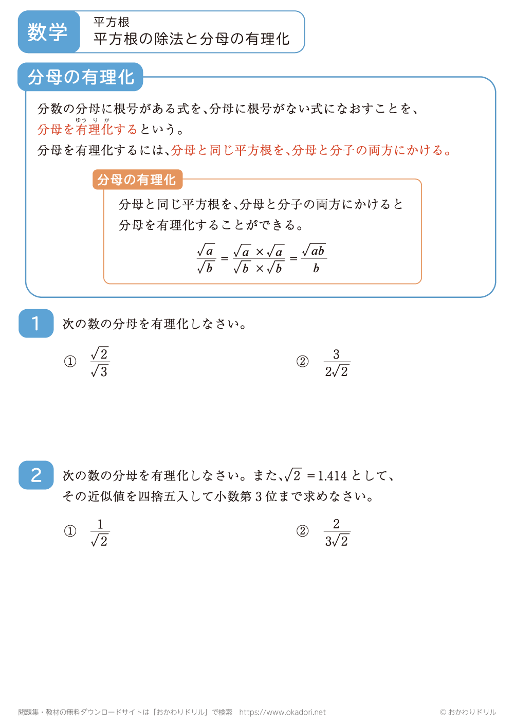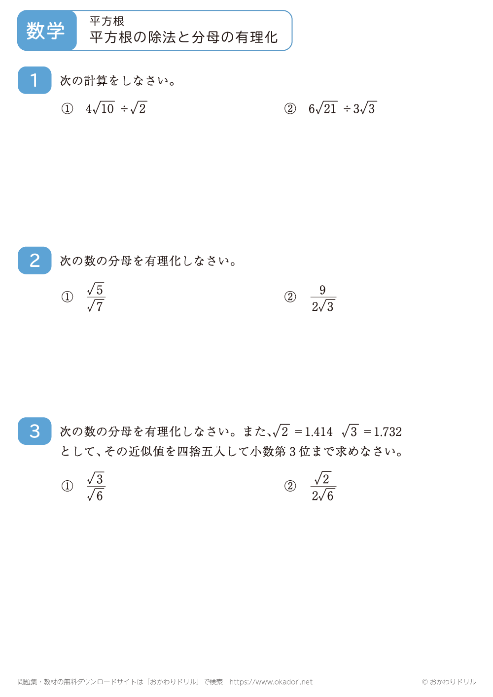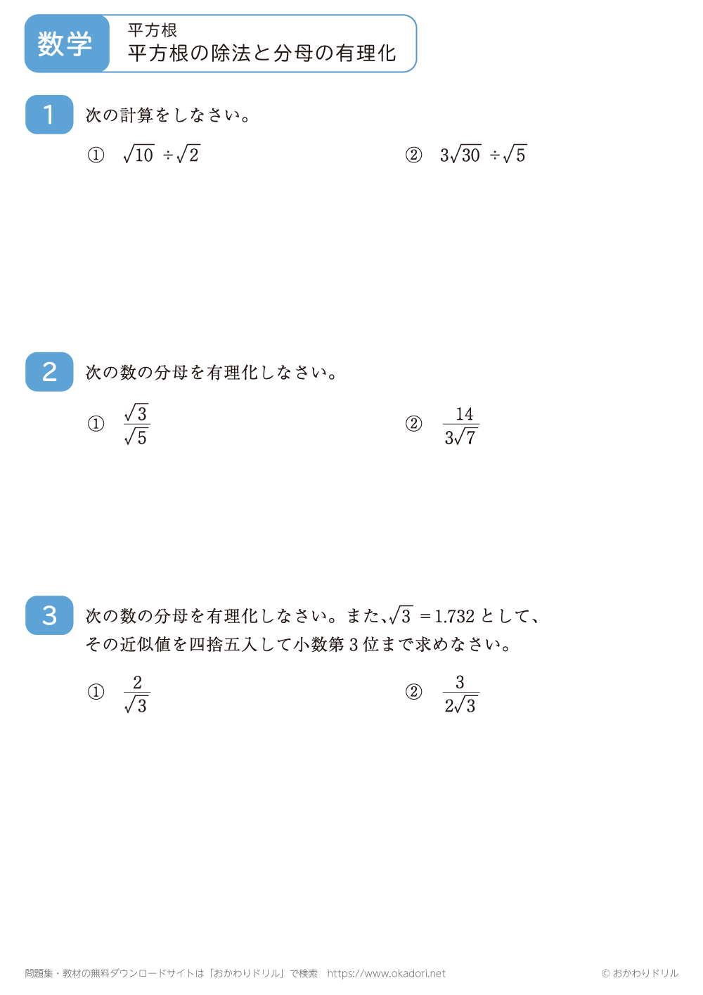 このページは、中学3年生で習う「平方根の除法と分母の有理化」が学習できるページで ...