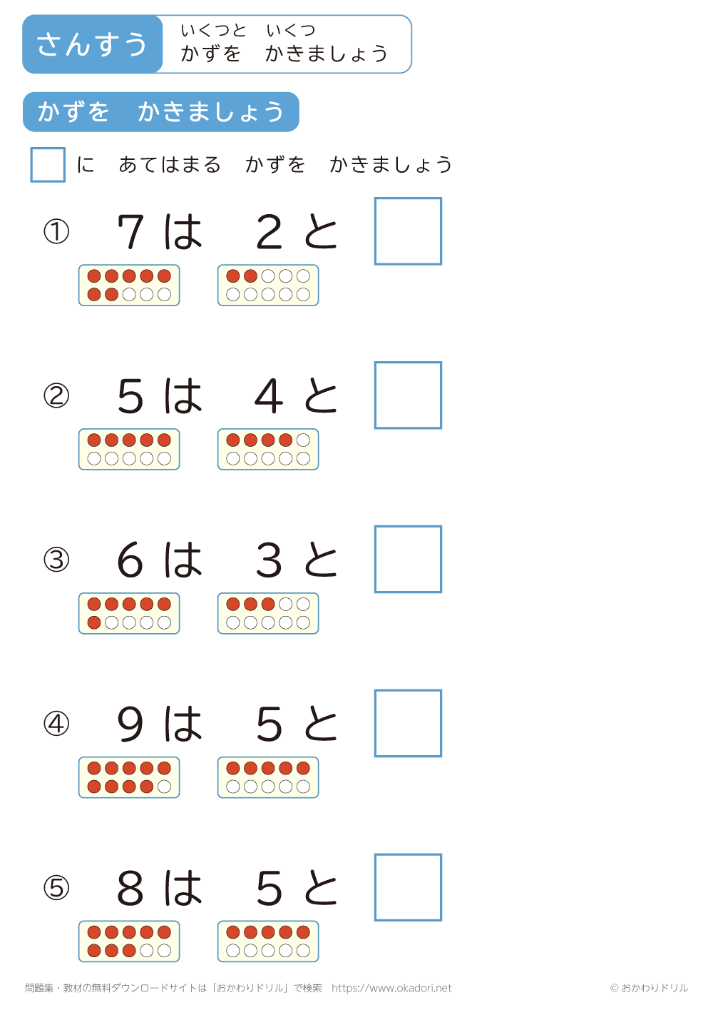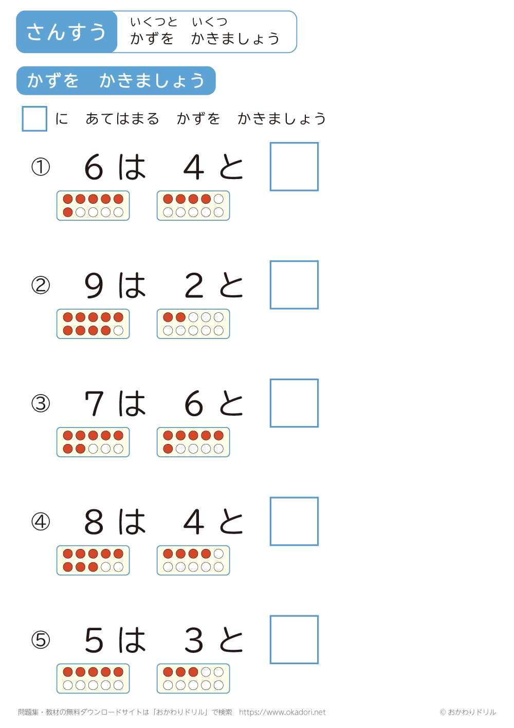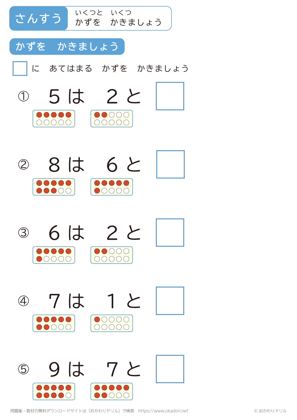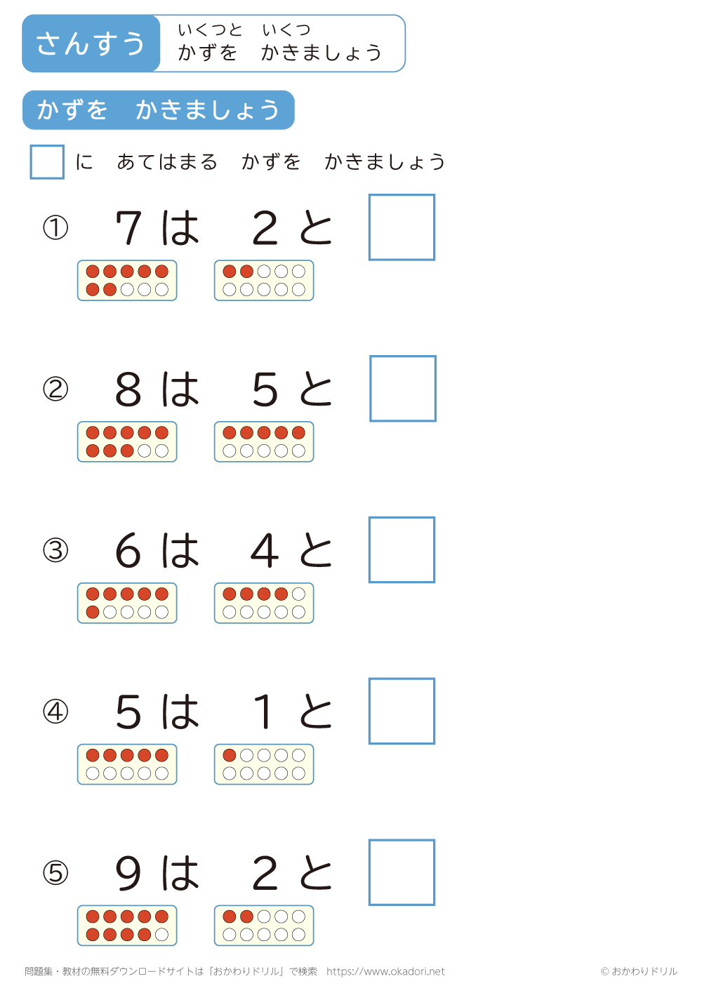 このページは、小学1年生で習う「いくつといくつ」を学習できるページです。 この問 ...