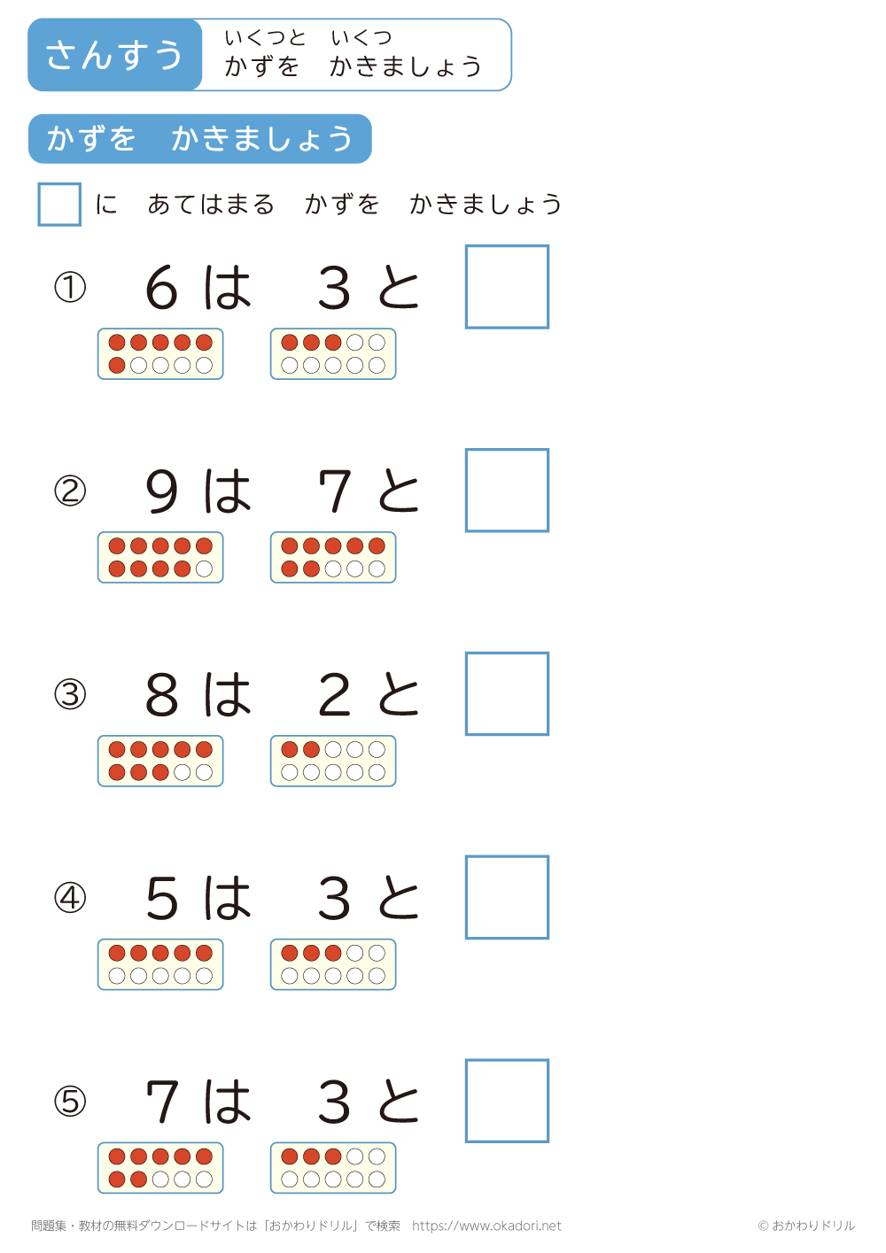 このページは、小学1年生で習う「のこりはいくつ」を学習できるページです。 この問 ...