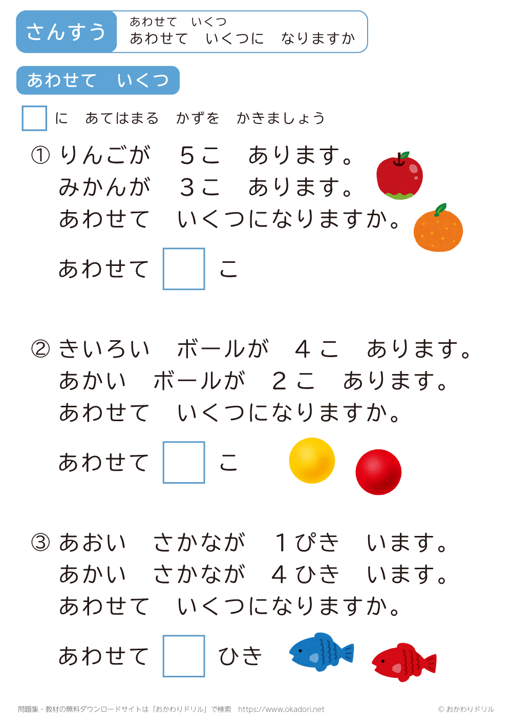 このページは、小学1年生で習う「あわせていくつ」を学習できるページです。 この問 ...
