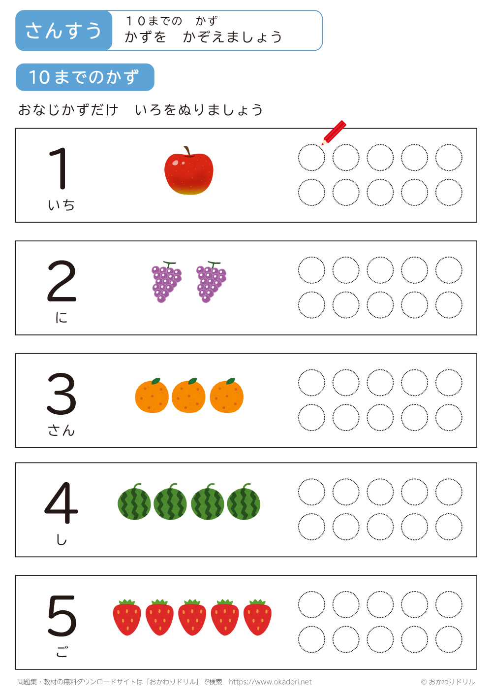 このページは、小学1年生で習う「10までの数をかぞえる」を学習できるページです。 ...