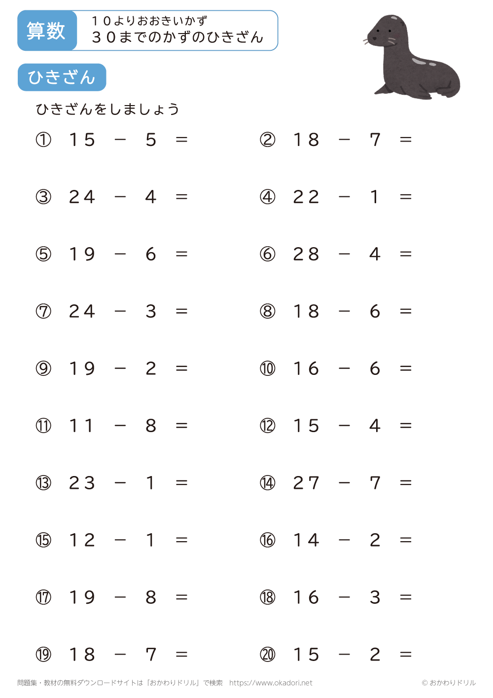 このページは、小学1年生で習う「10までの数の引き算-順番-」が学習できるページ ...