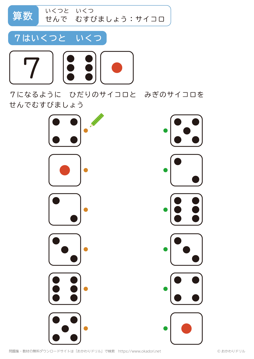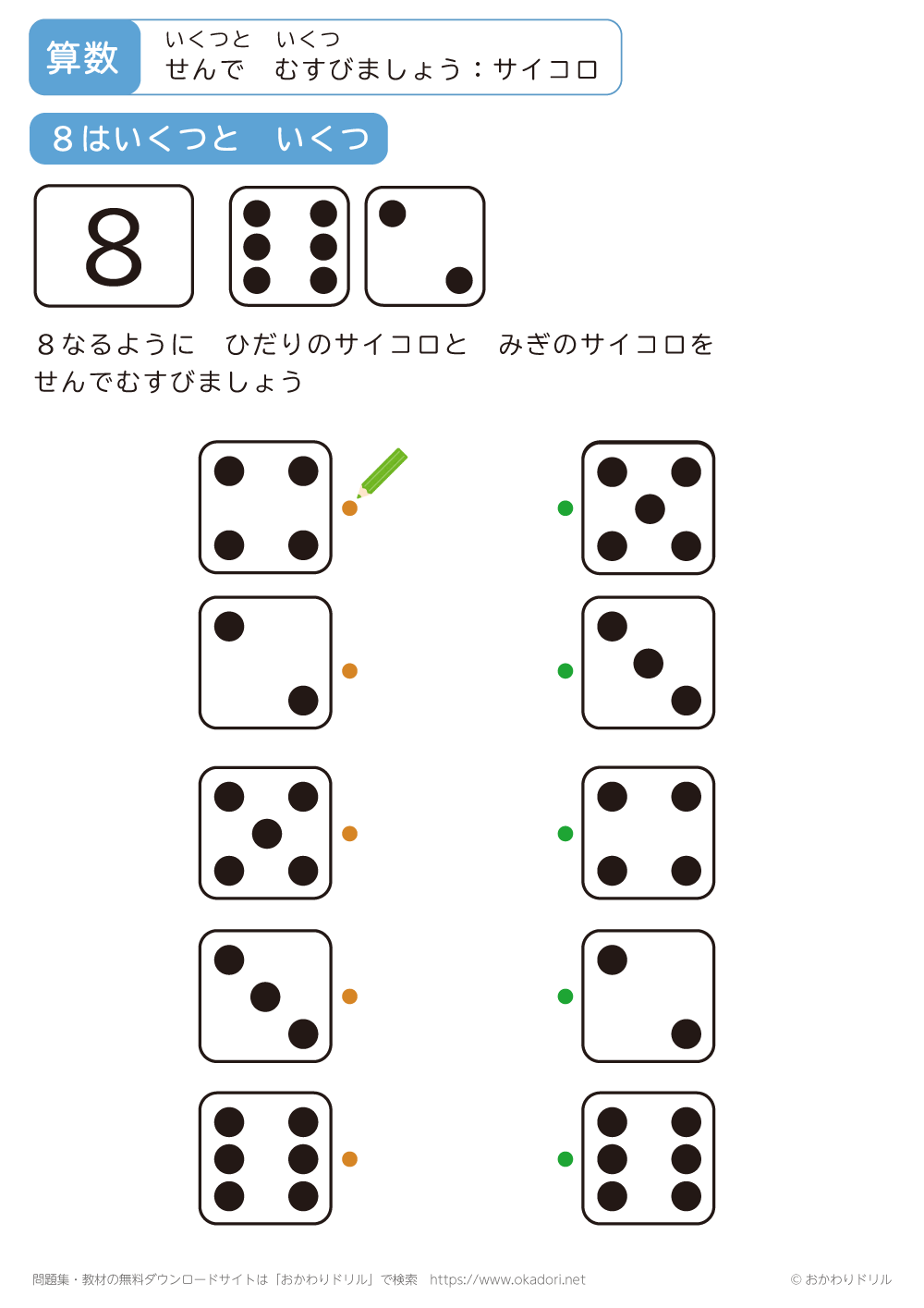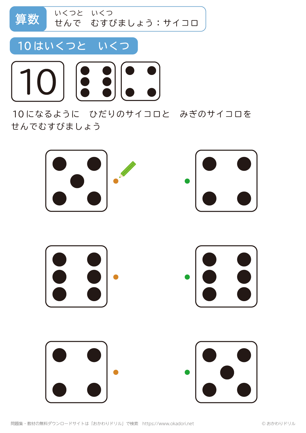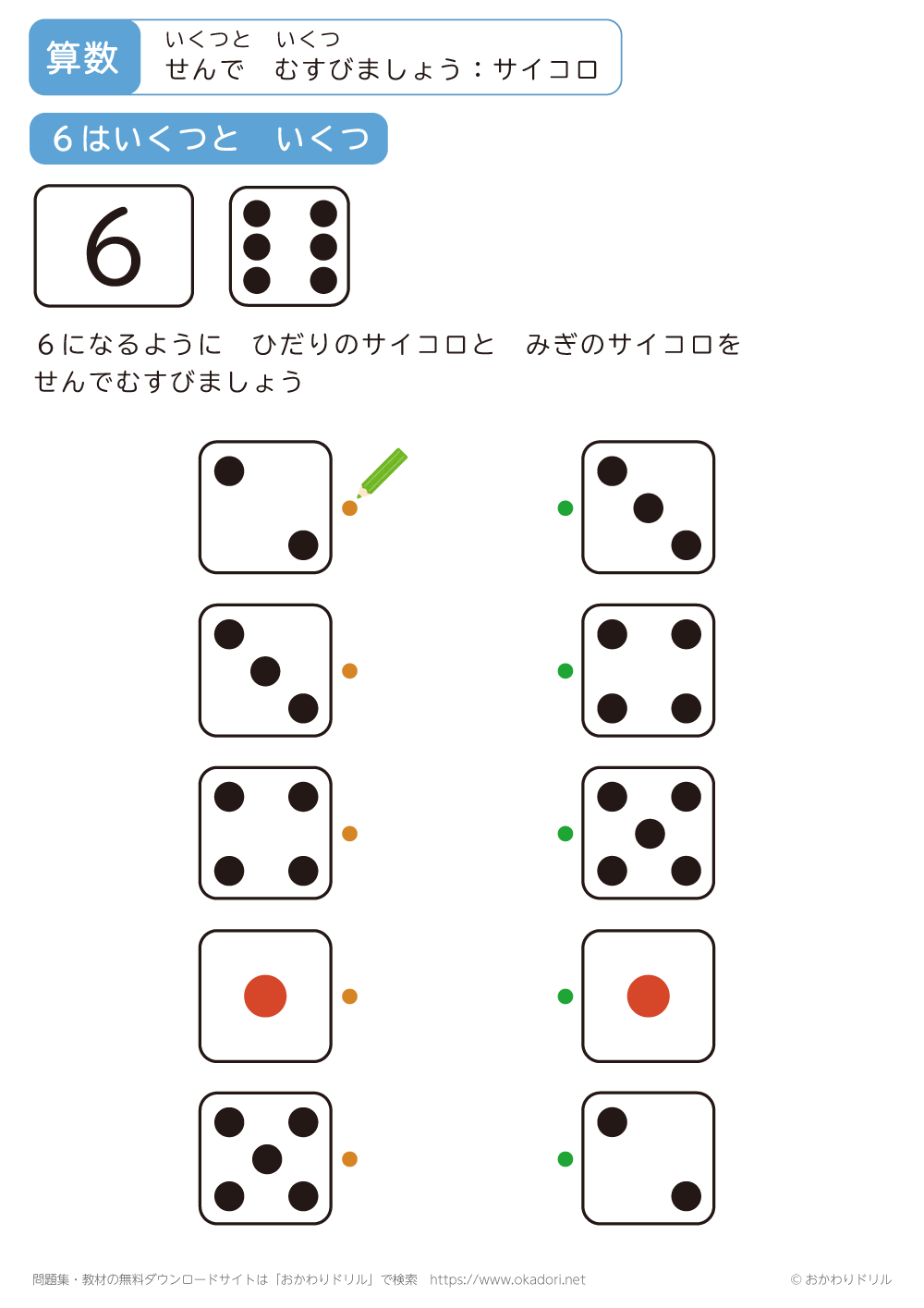 このページは、小学1年生で習う「いくつといくつ:サイコロ」を学習できるページです ...