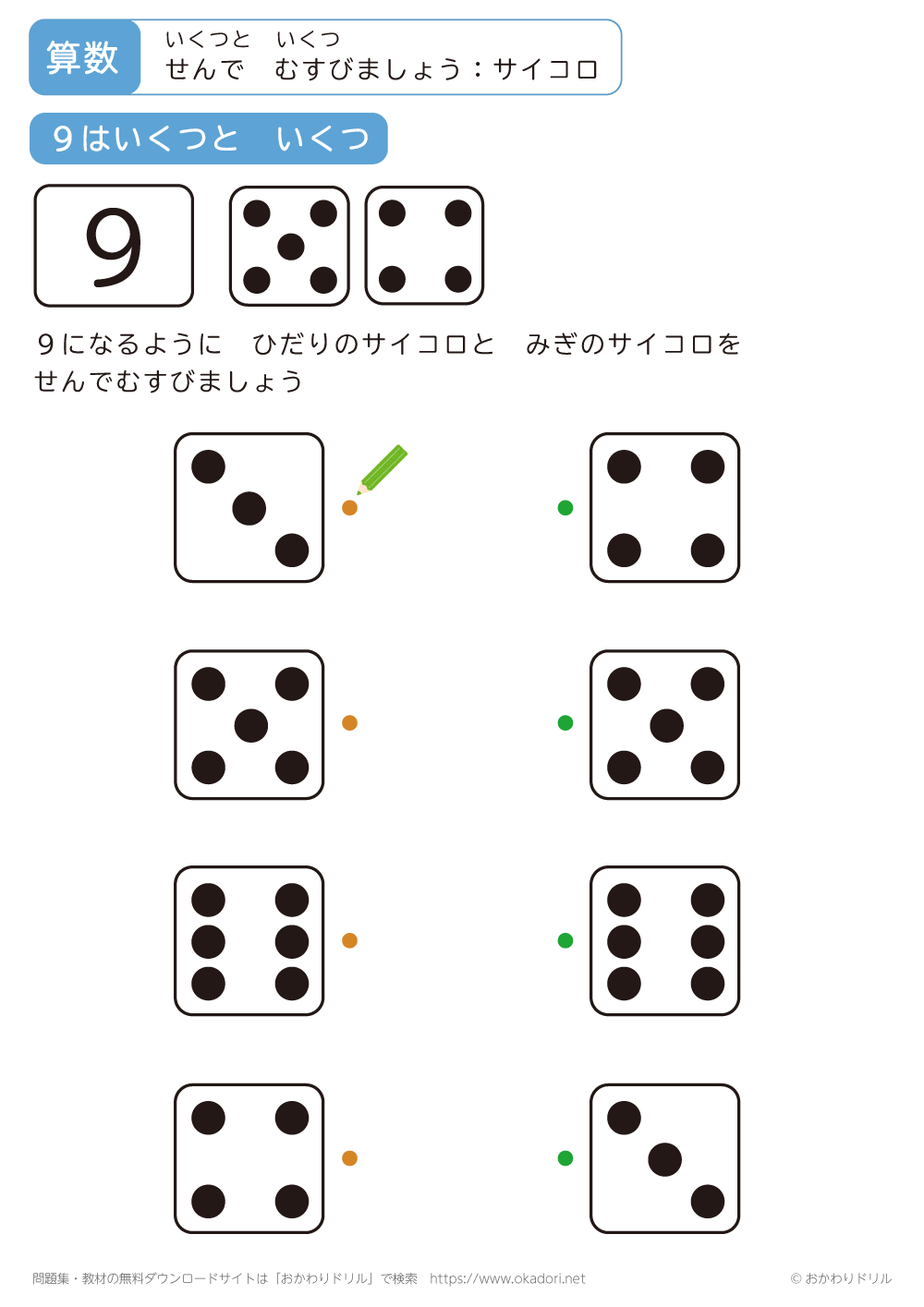 「いくつといくつ:サイコロ」の学習プリントはこちら
