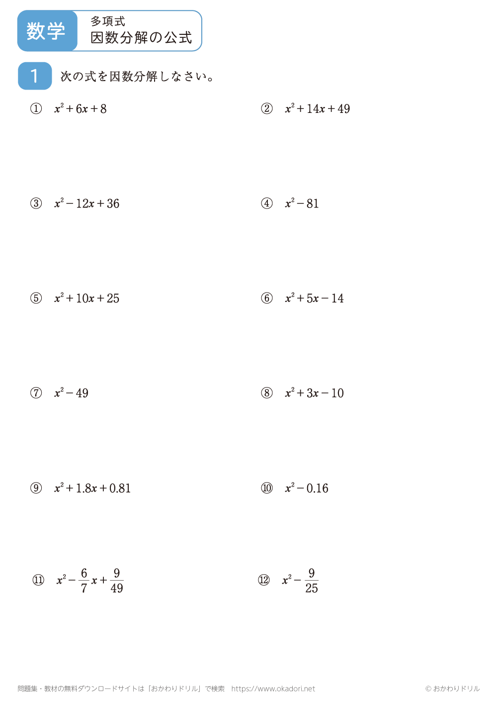 このページは、中学3年生で習う「因数分解の公式の利用」して問題を解く学習できるペ ...