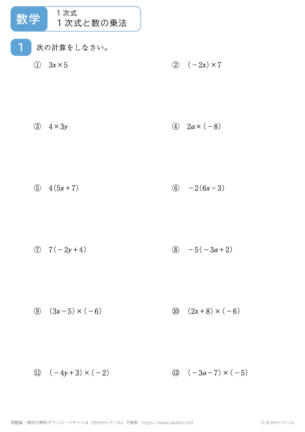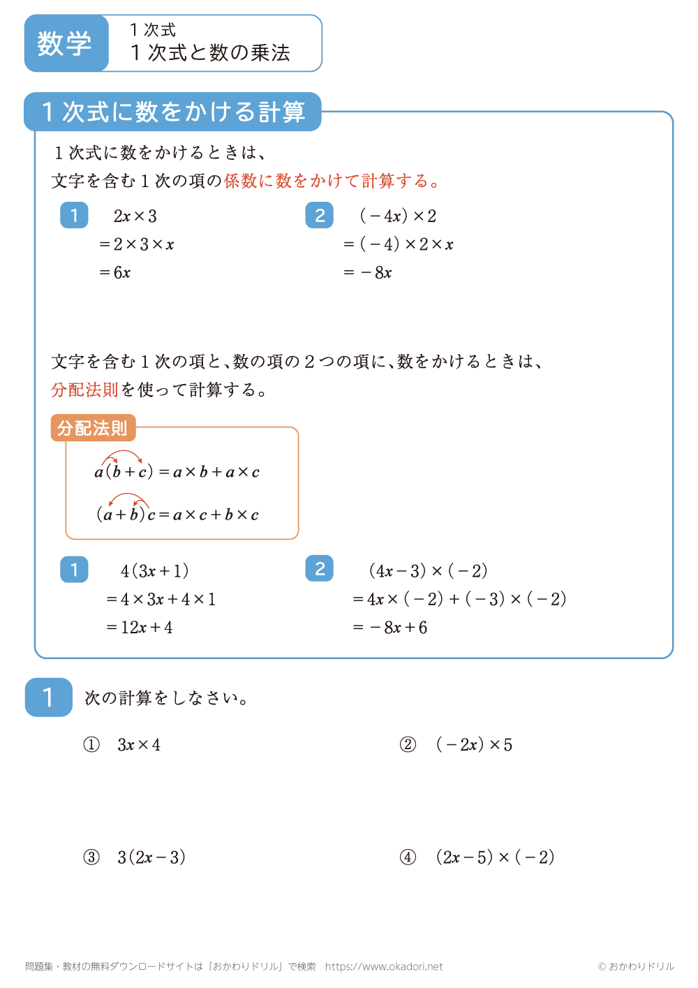 ・1次式に数をかける計算をします。