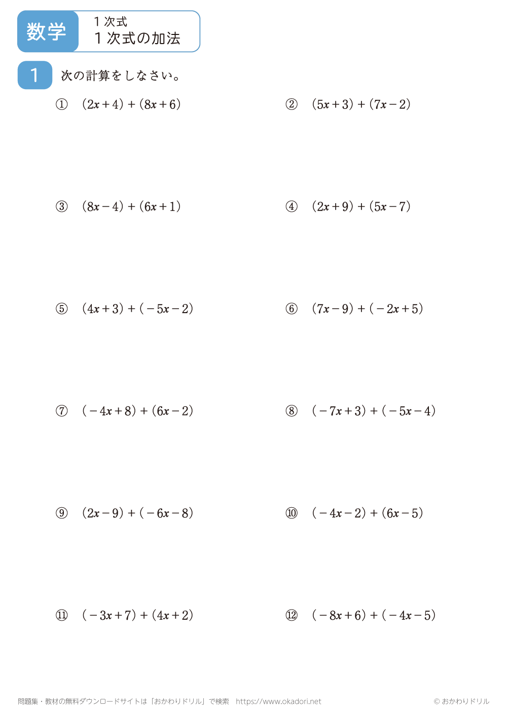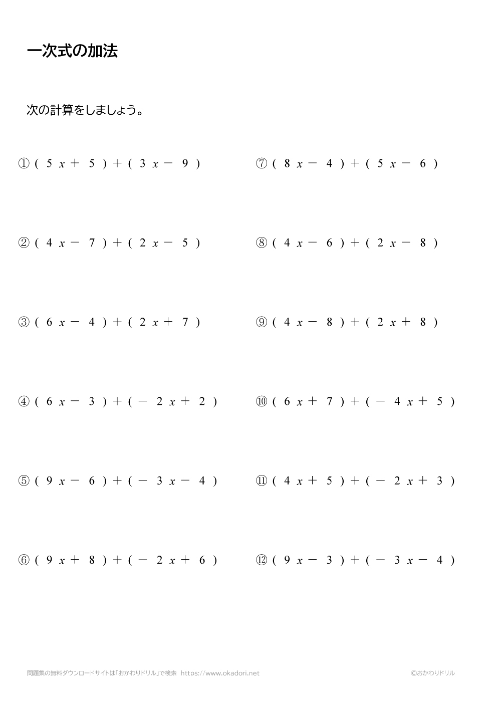 このページは、中学1年生で習う「1次式の加法」が学習できるページです。