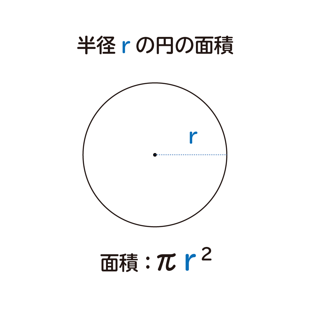 まずはじめに、半径rの円の「面積」の式を確認しておきます。