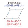 - ”平行四辺形の対辺の長さは等しくなる”ことの説明