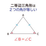 参考:二等辺三角形の2つの角が等しくなる理由については、下のリンクを参考にしてみて下さい。