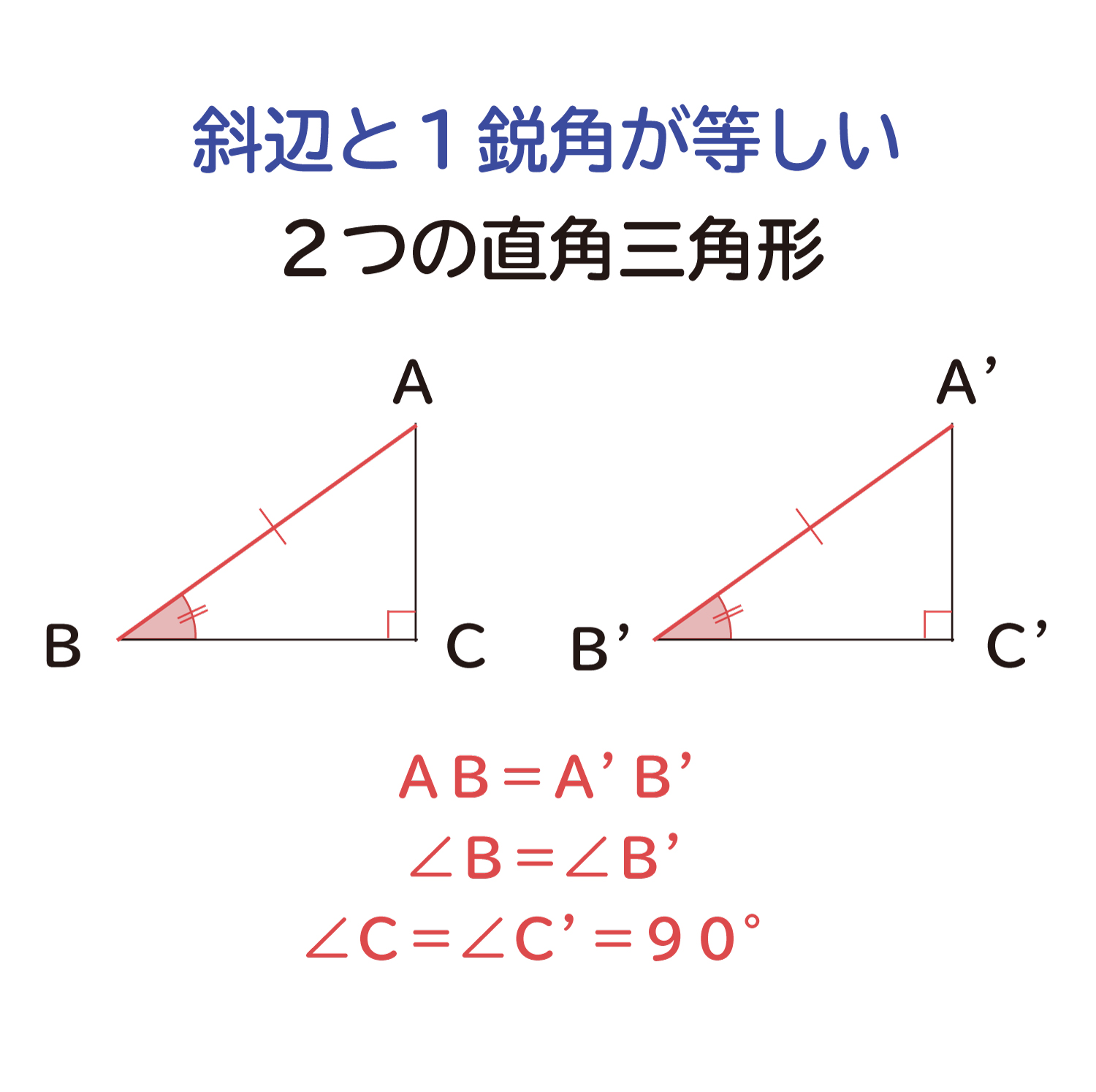 AB=A’B’、∠B=∠B’、∠C=∠C’=90°