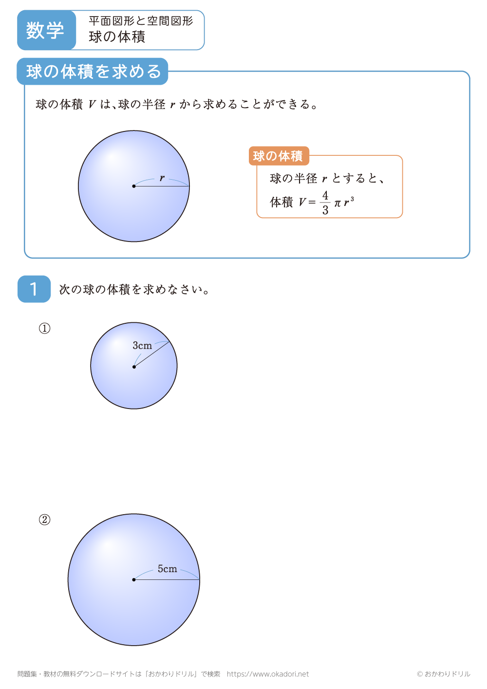 このページは、中学1年生で習う「球の体積」が学習できるページです。 この問題のポ ...