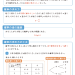 ・確率を求めるときに、起こり得る場合のすべてを、表や樹形図を使って調べることができます。