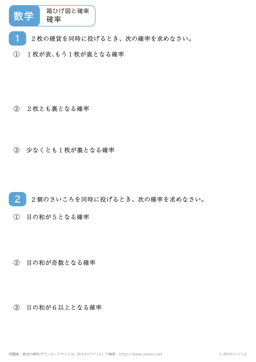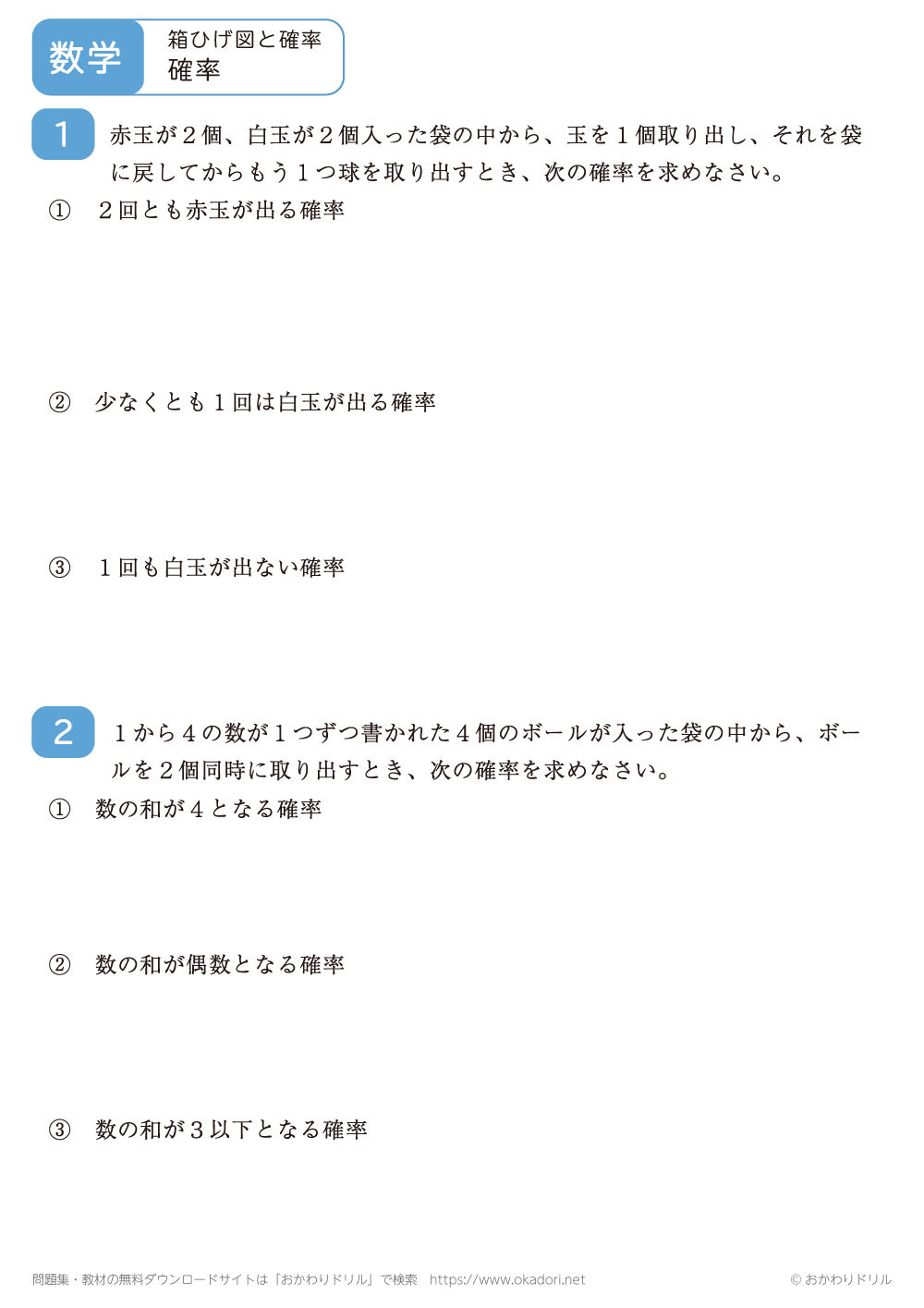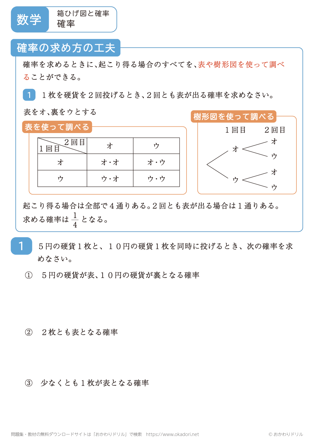 このページは、中学2年生で習う「確率」が学習できるページです。