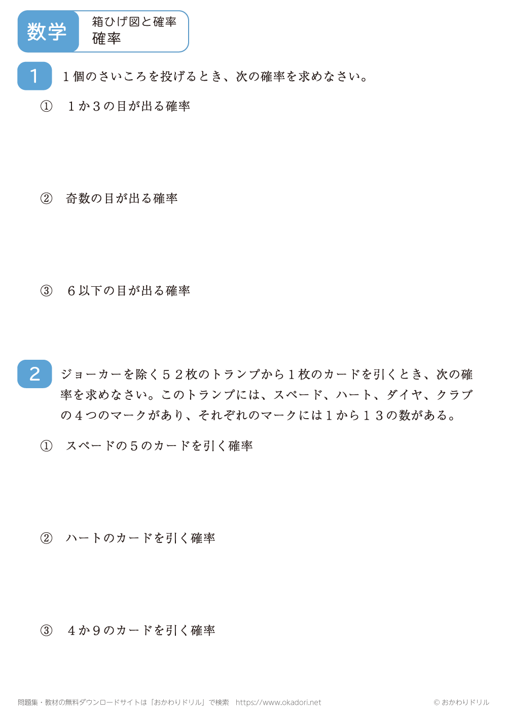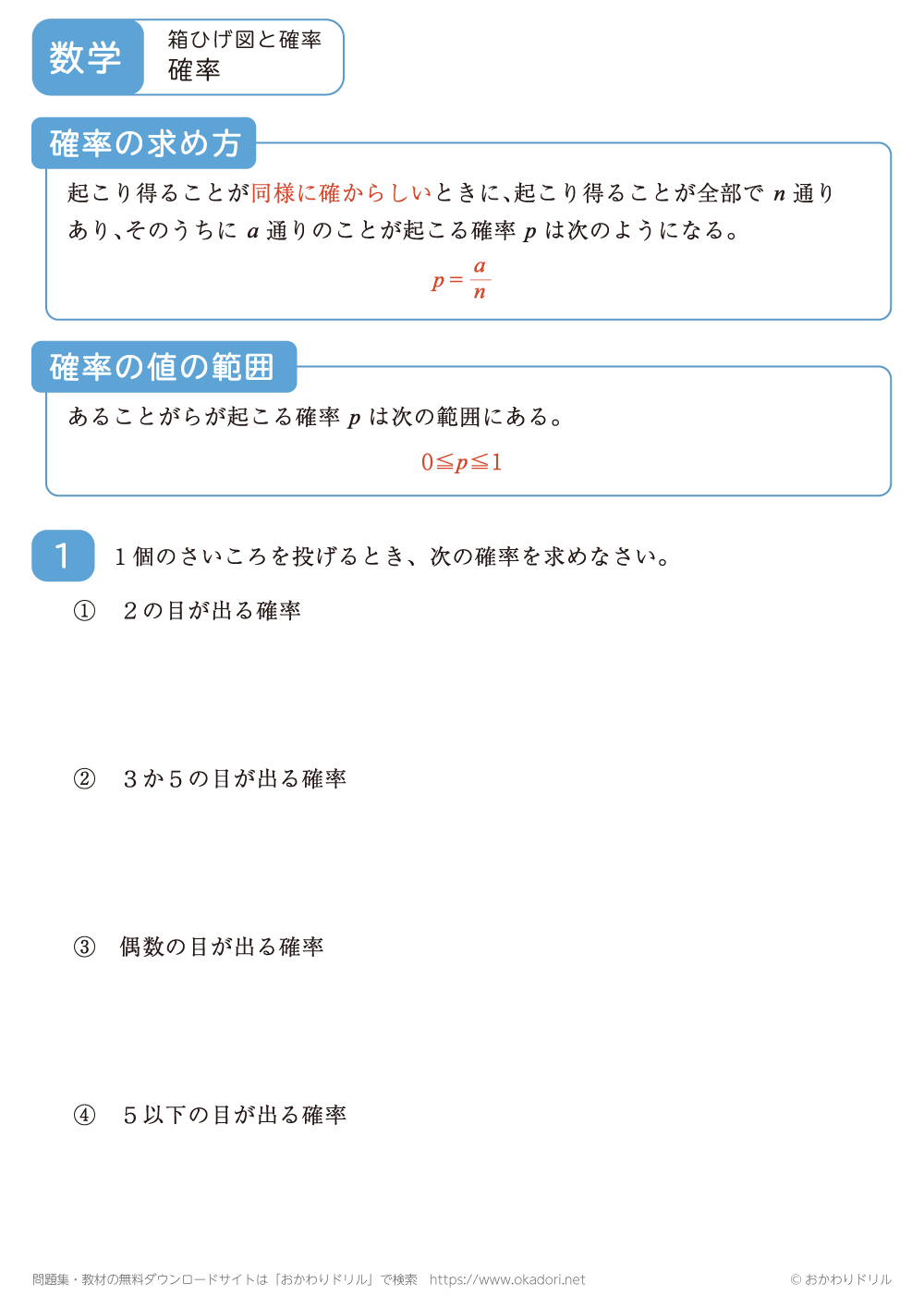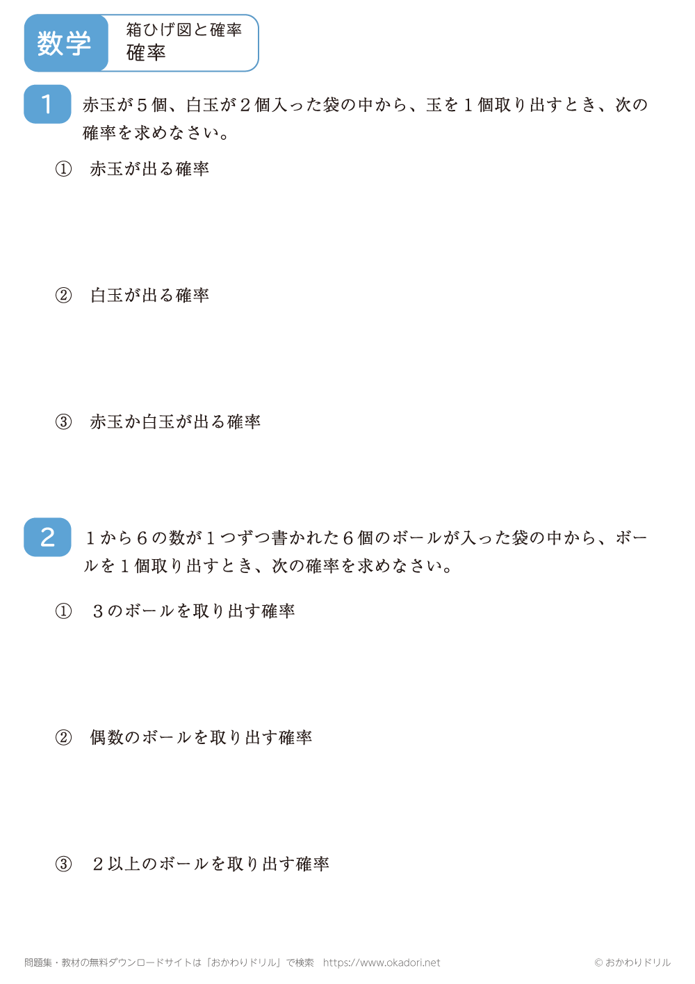 このページは、中学2年生で習う「確率」が学習できるページです。