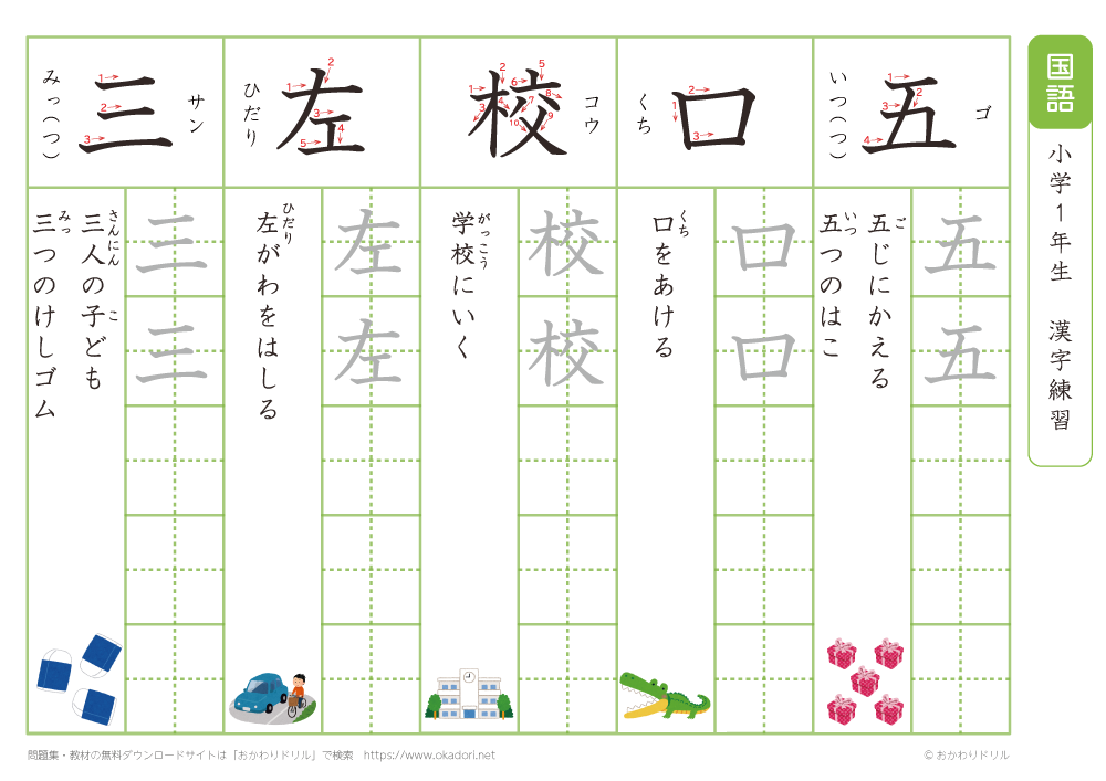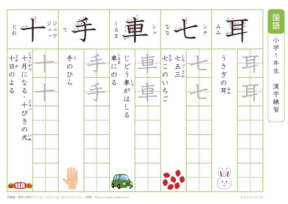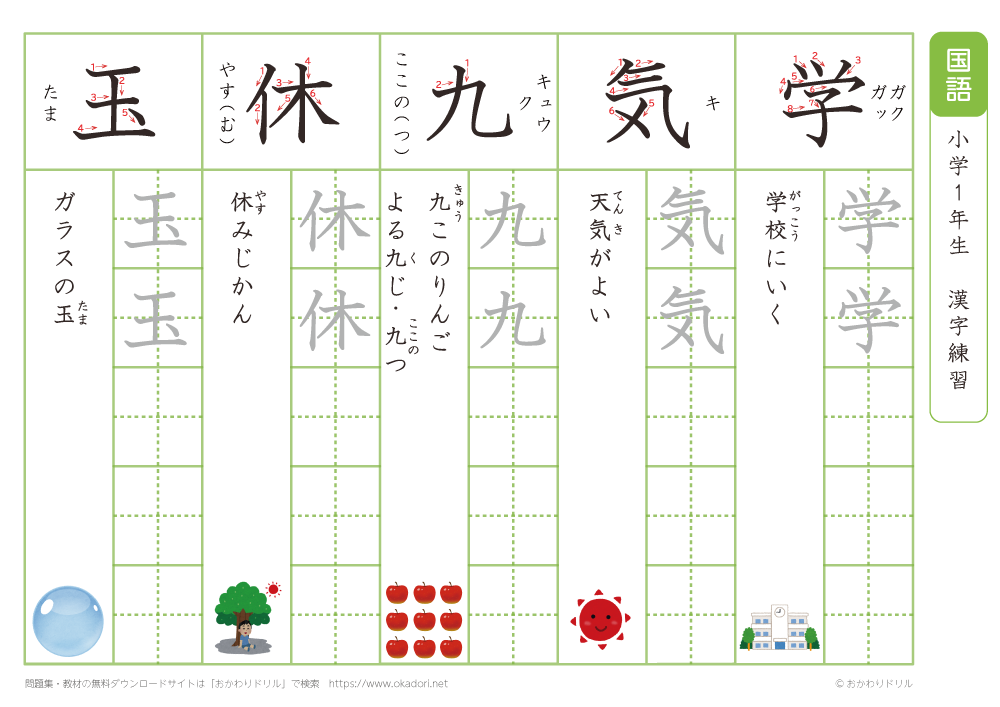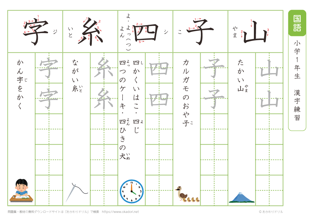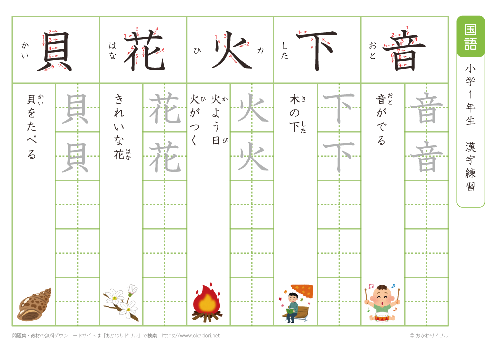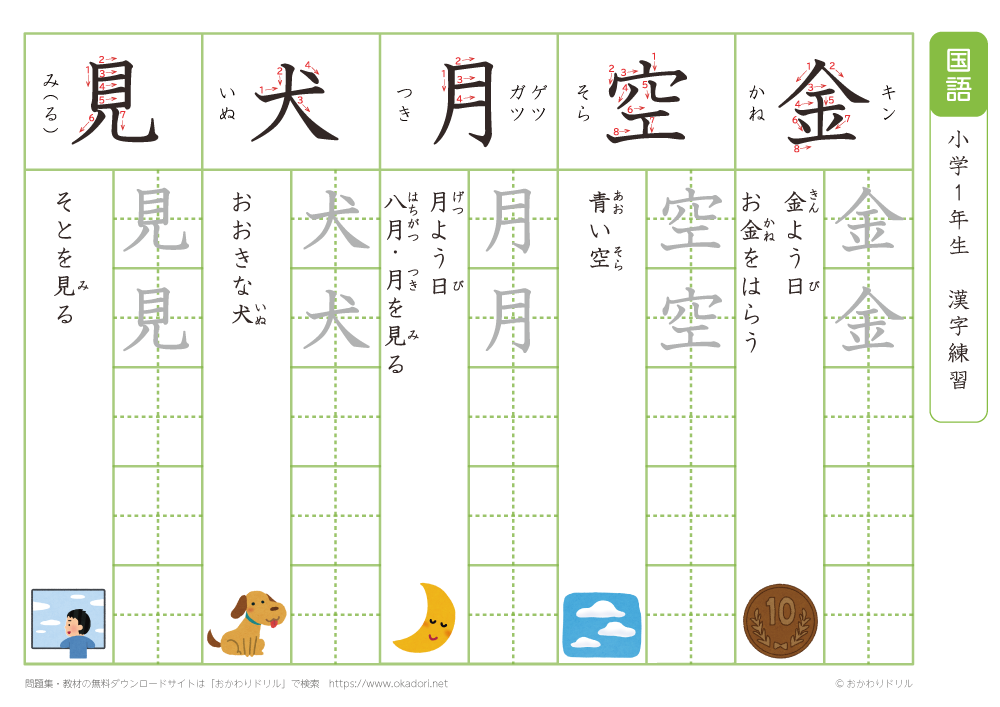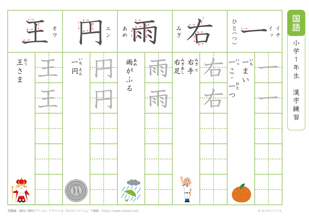 小学1年生の漢字の書き方の練習に、ぜひ利用して下さいね!