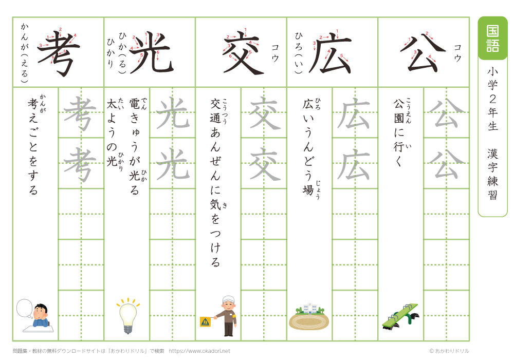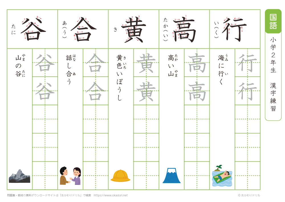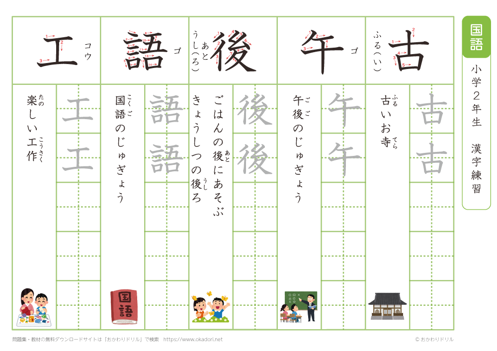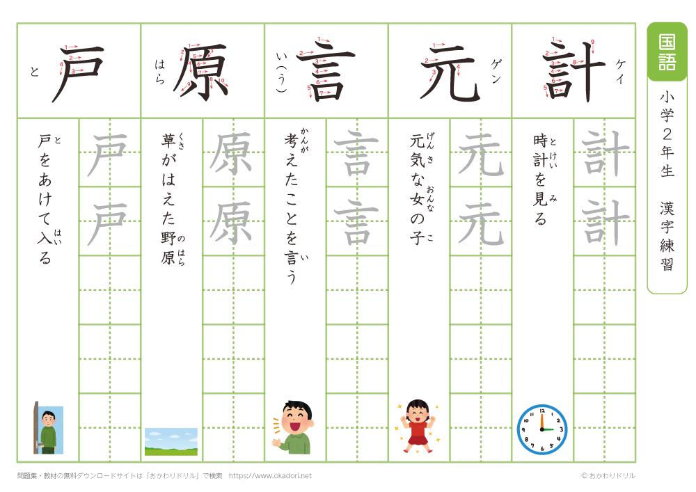 小学2年生の漢字の書き方の練習に、ぜひ利用して下さいね!