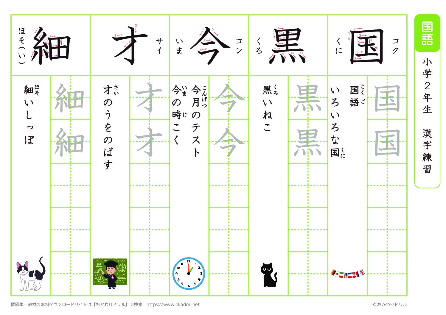 このページは、小学2年生で習う読みが「き~さ」の漢字30字の書き方を練習できる教 ...