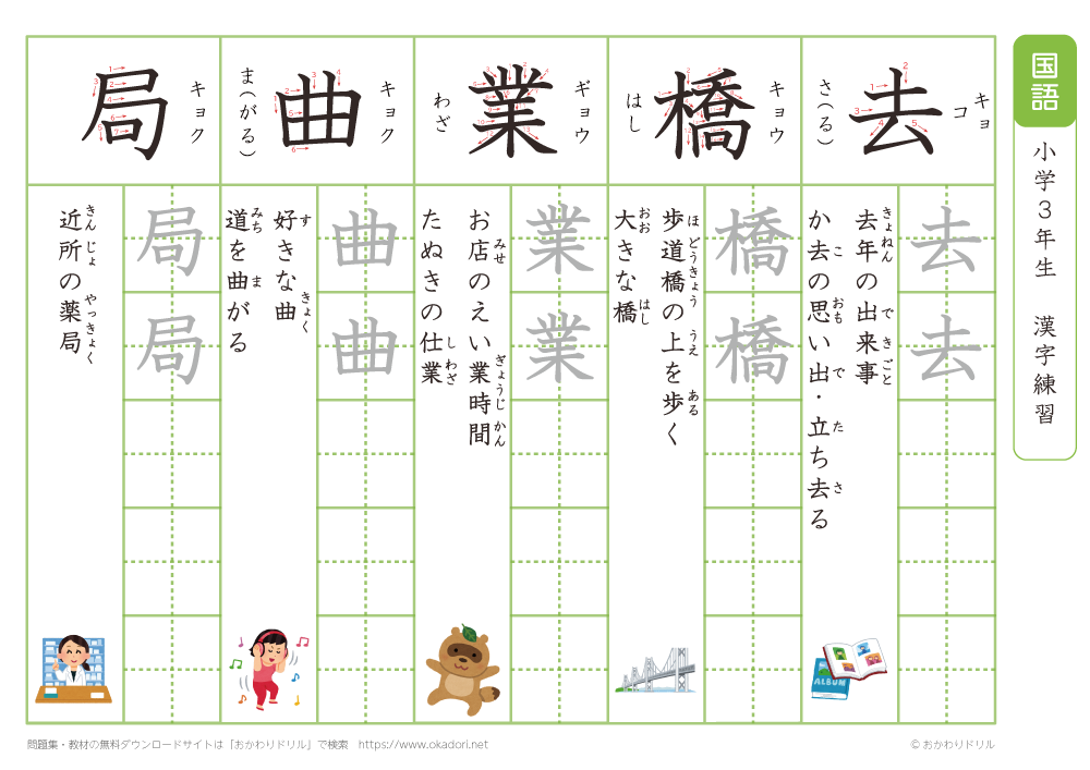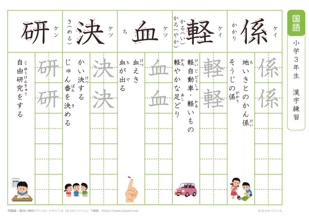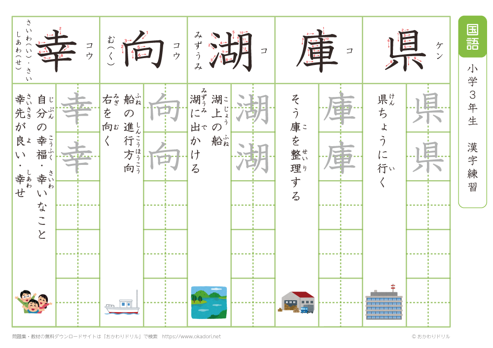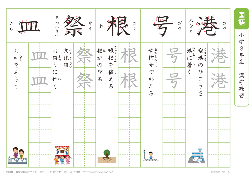 小学3年生の漢字の書き方の練習に、ぜひ利用して下さいね!