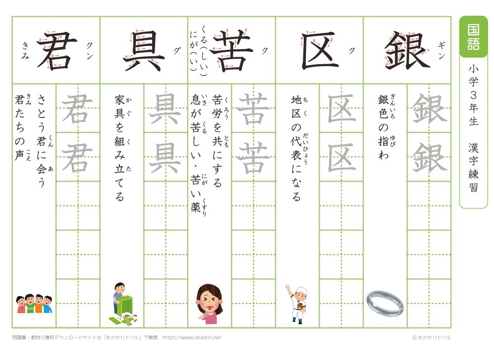 このページは、小学3年生で習う読みが「き~さ」の漢字30字の書き方を練習できる教 ...