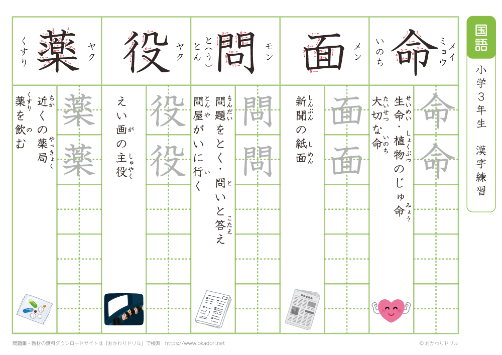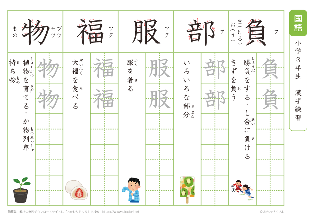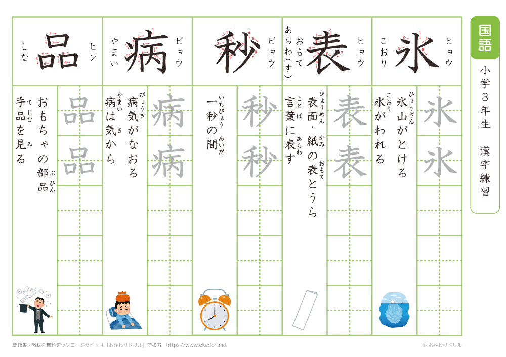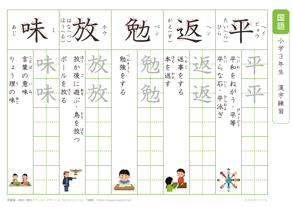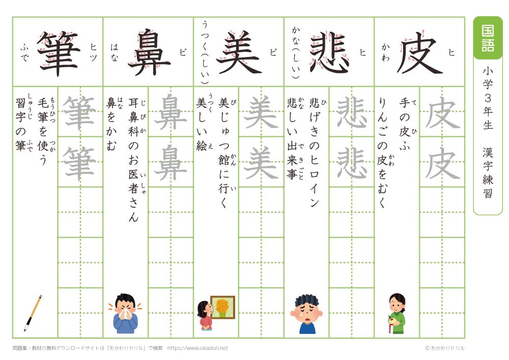 小学3年生の漢字の書き方の練習に、ぜひ利用して下さいね!