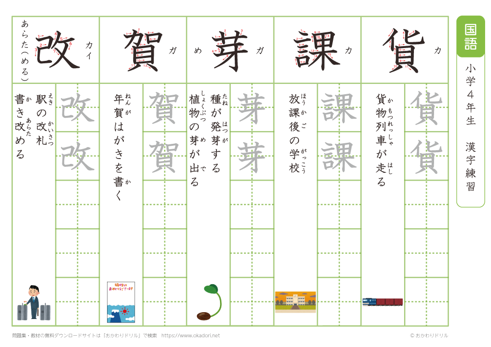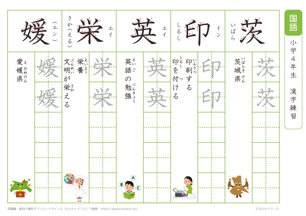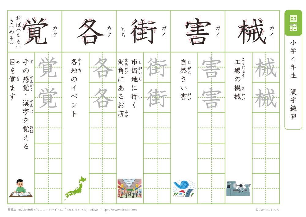小学4年生の漢字の書き方の練習に、ぜひ利用して下さいね!