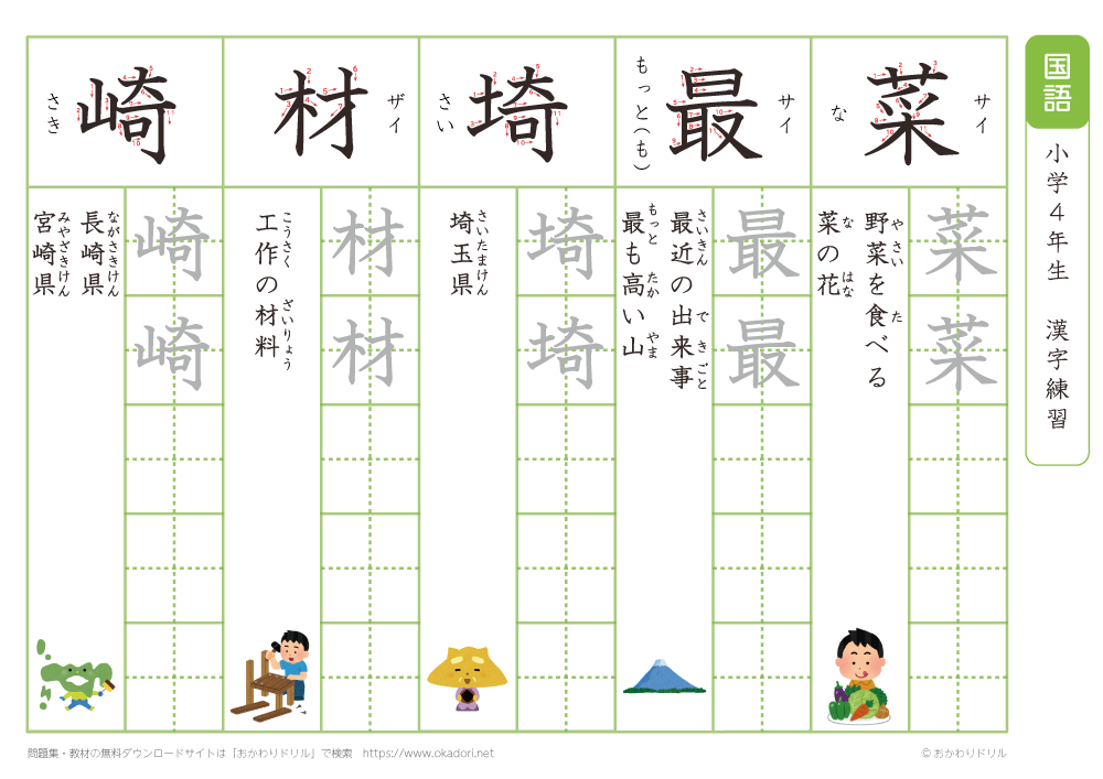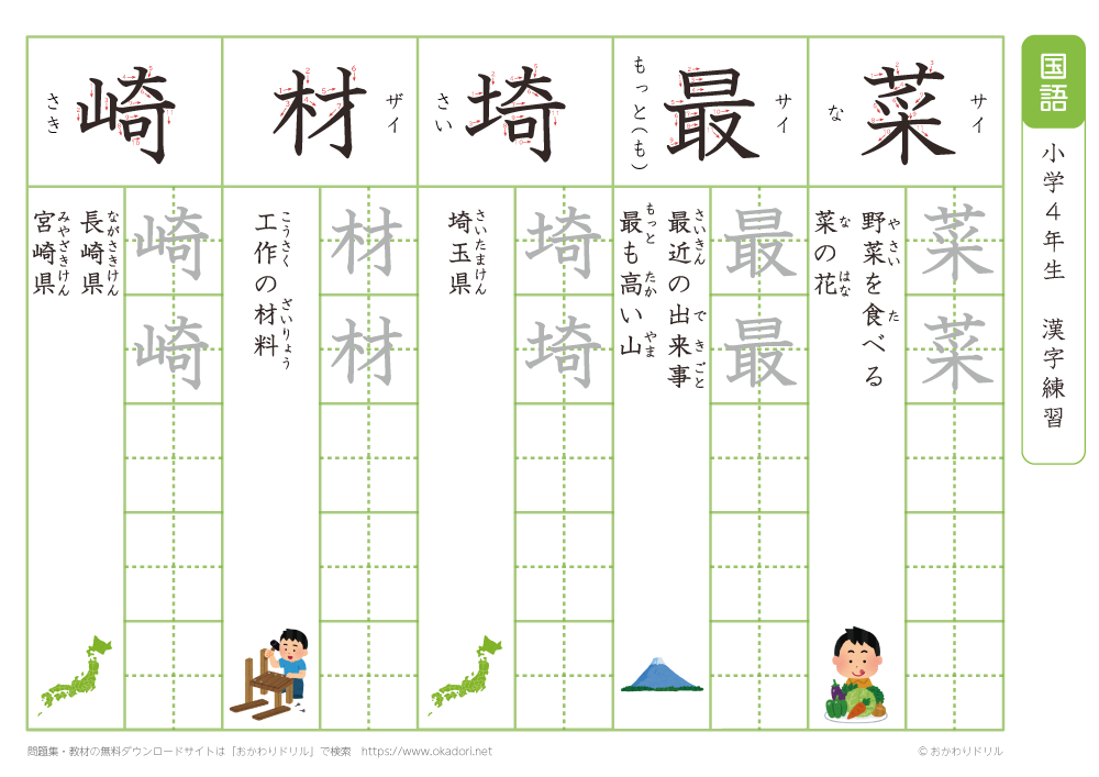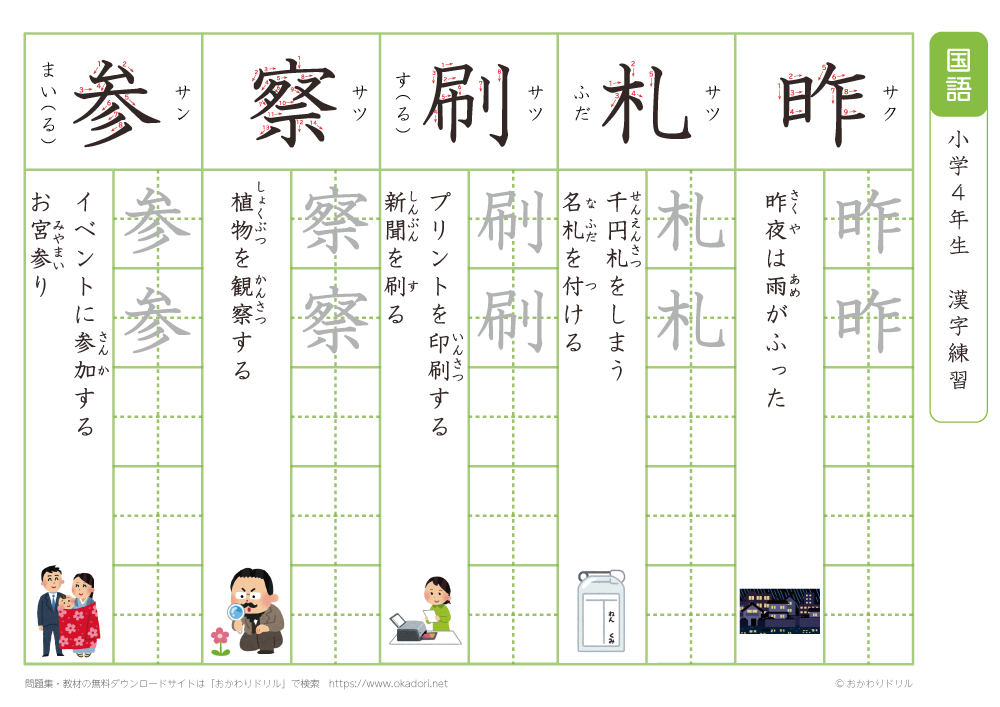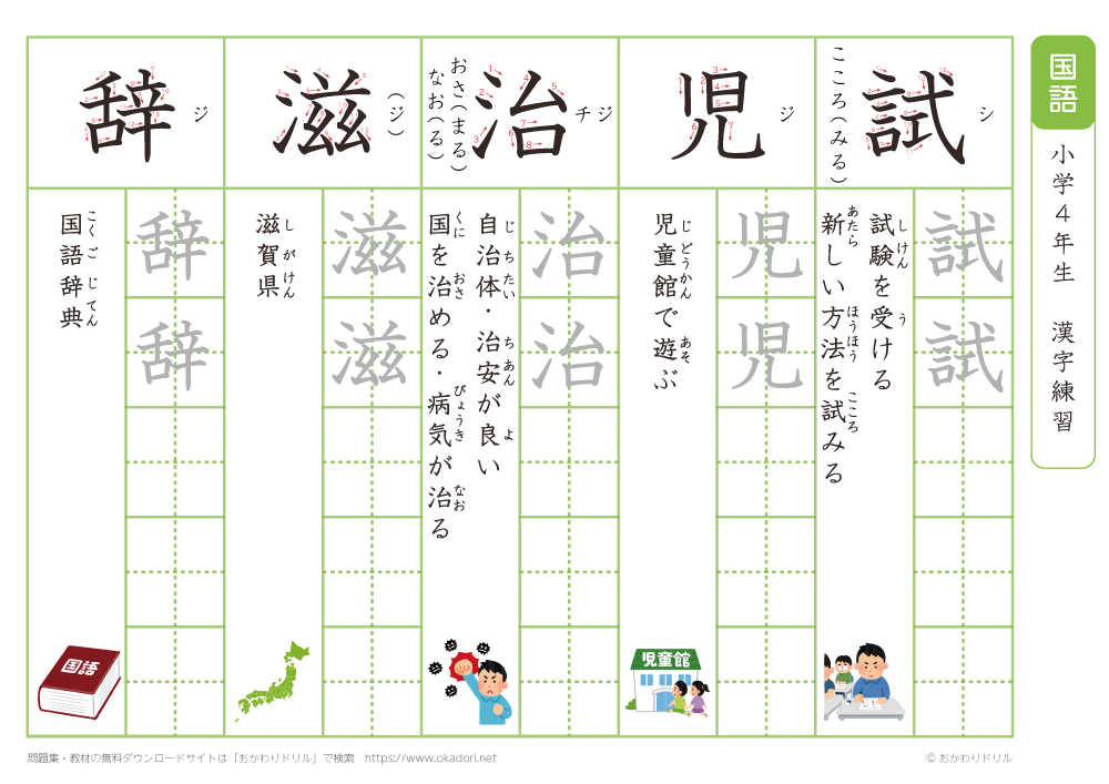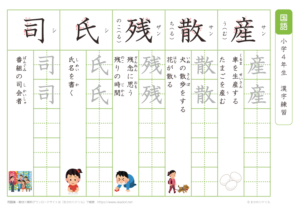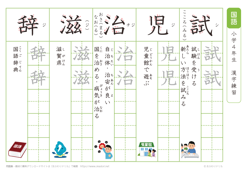 小学4年生の漢字の書き方の練習に、ぜひ利用して下さいね!