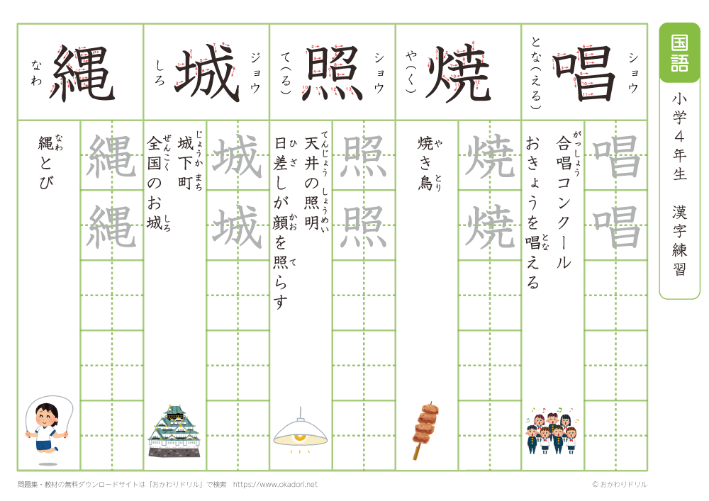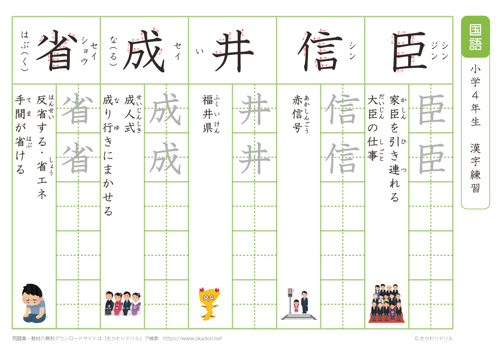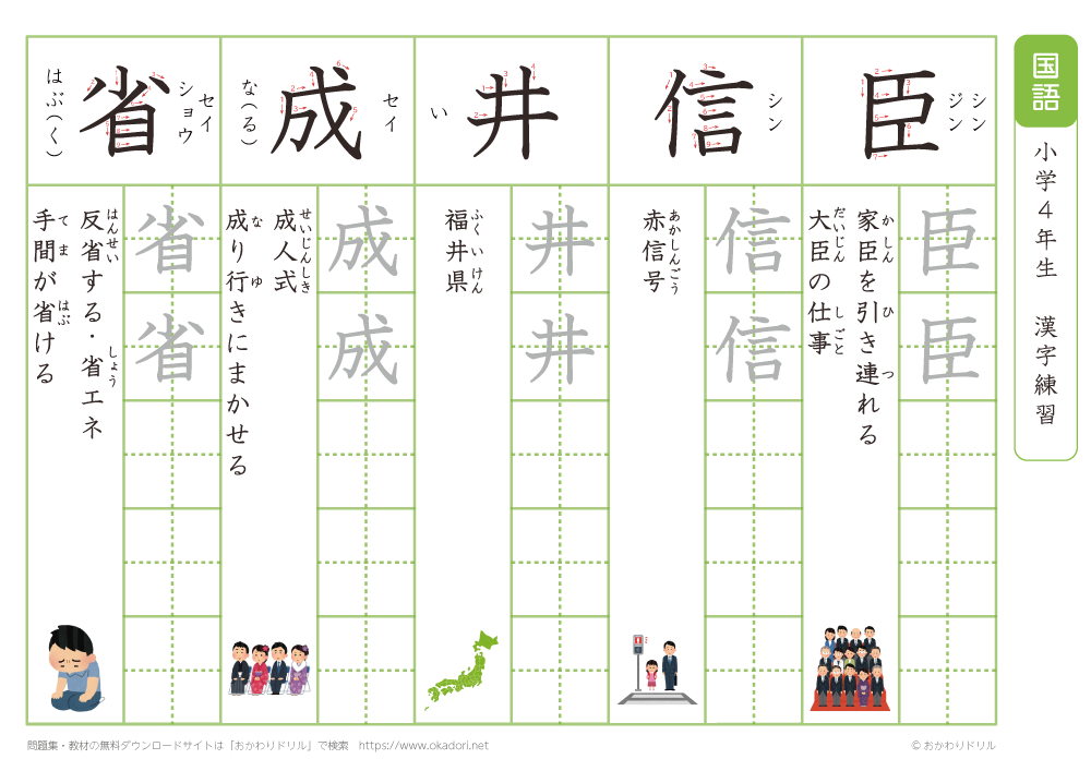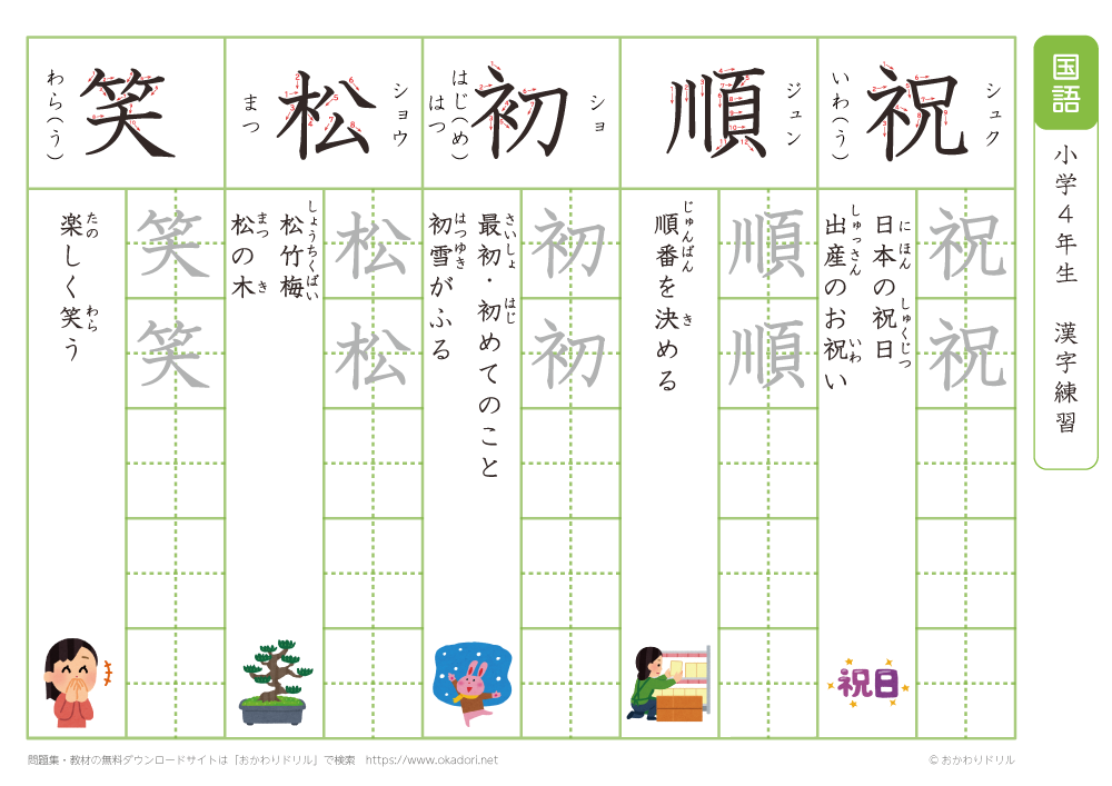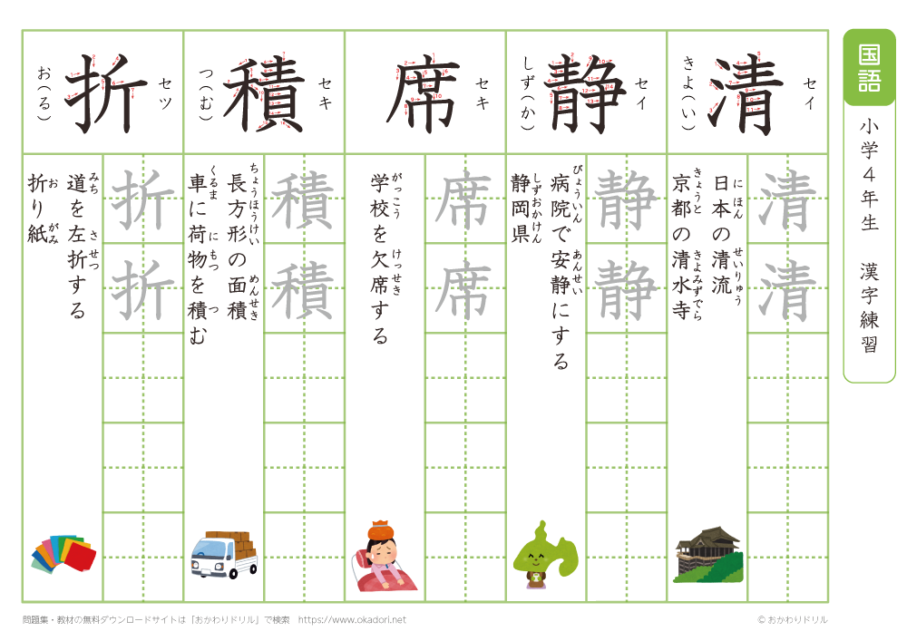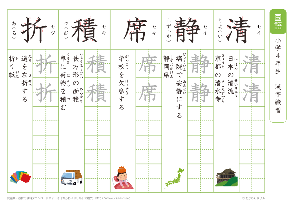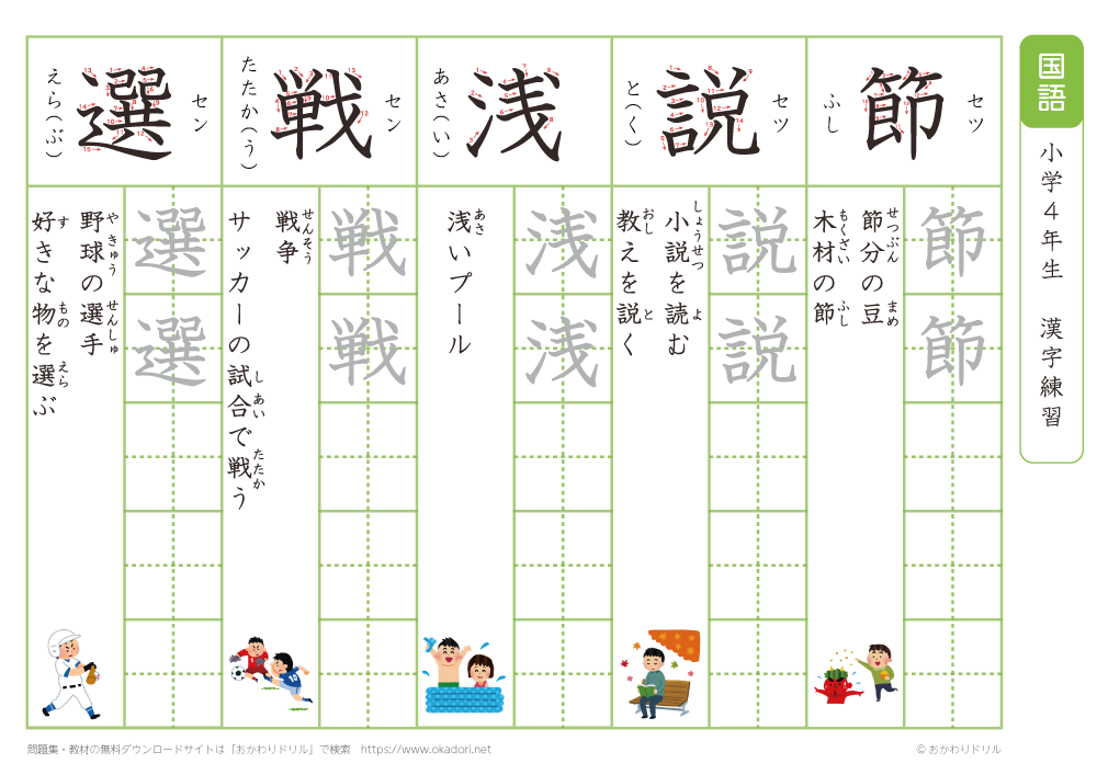小学4年生の漢字の書き方の練習に、ぜひ利用して下さいね!
