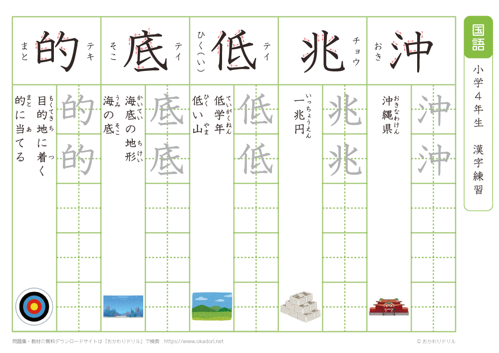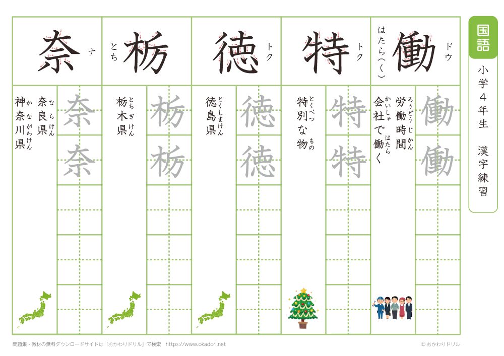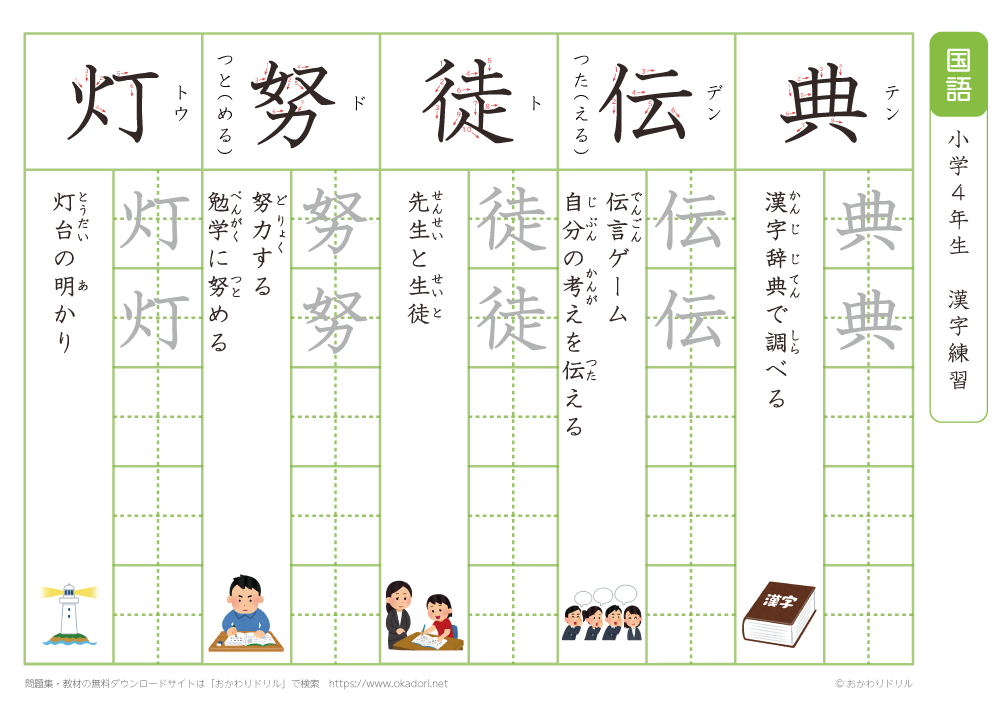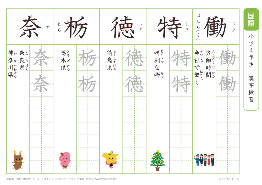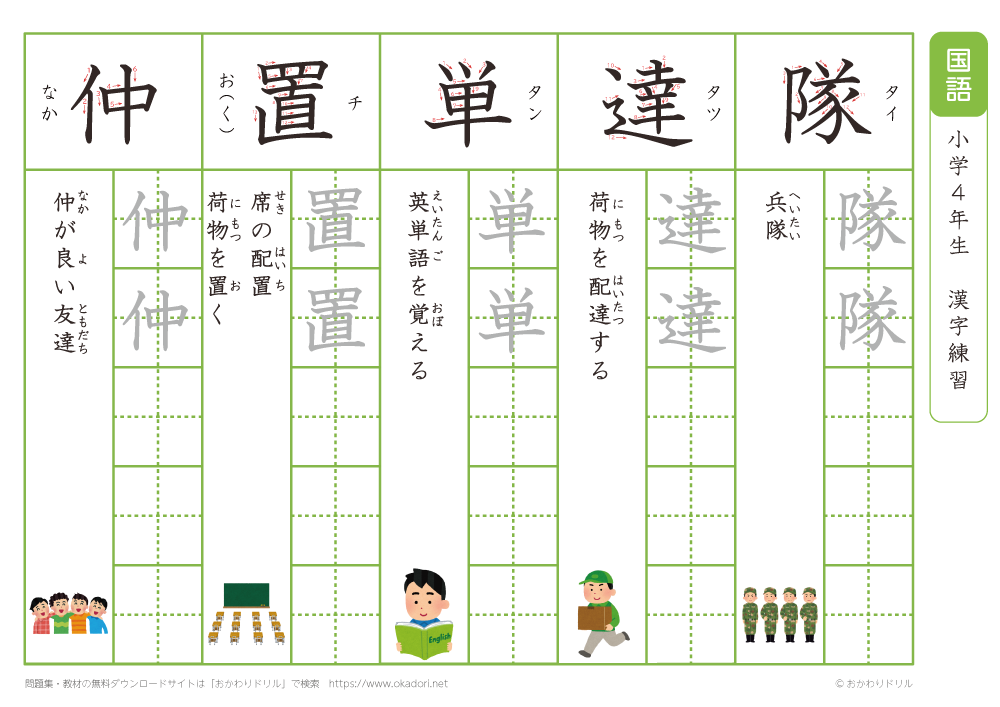 小学4年生の漢字の書き方の練習に、ぜひ利用して下さいね!