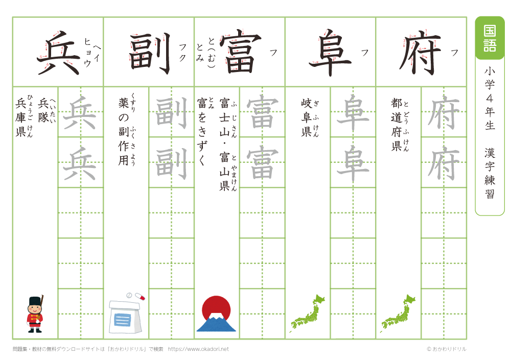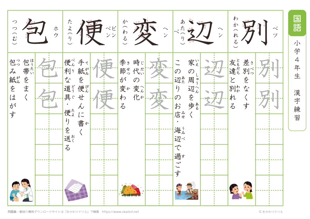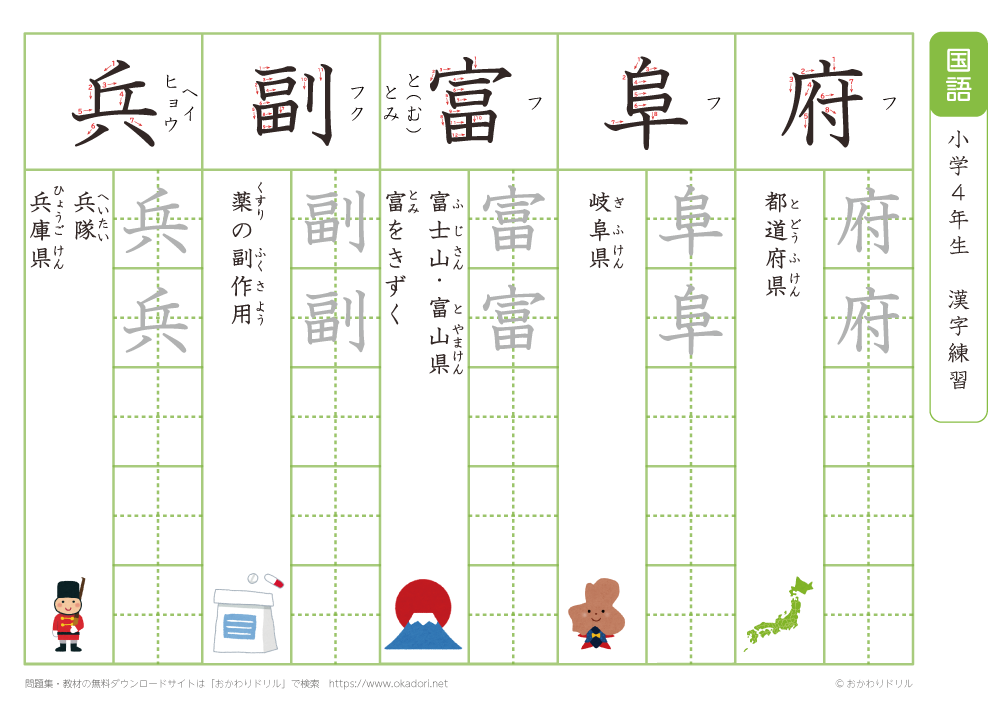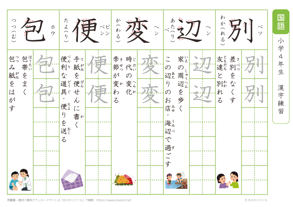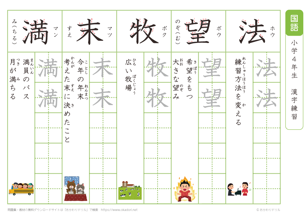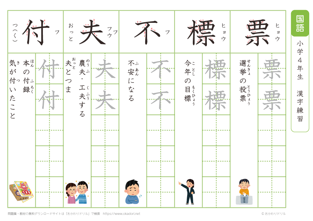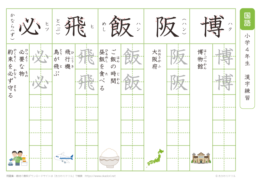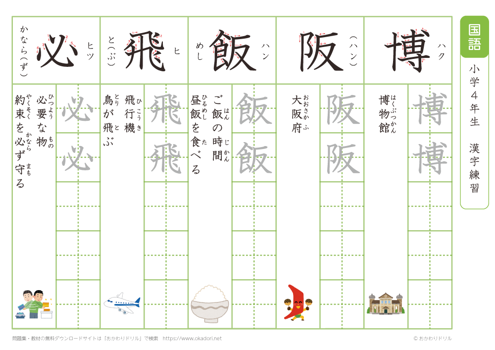 小学4年生の漢字の書き方の練習に、ぜひ利用して下さいね!