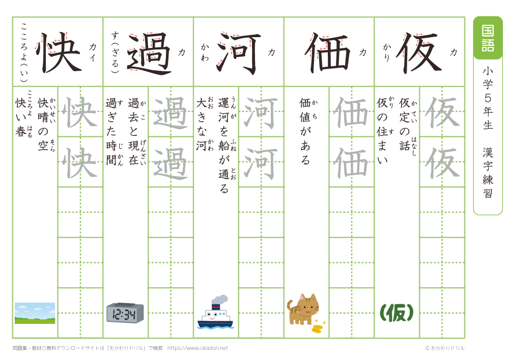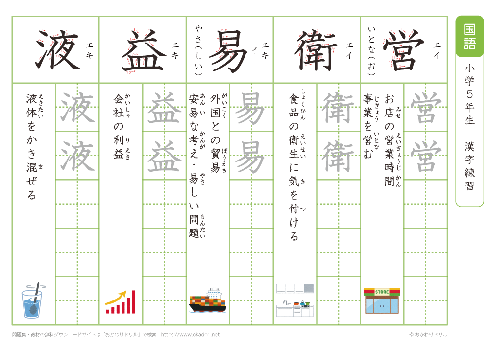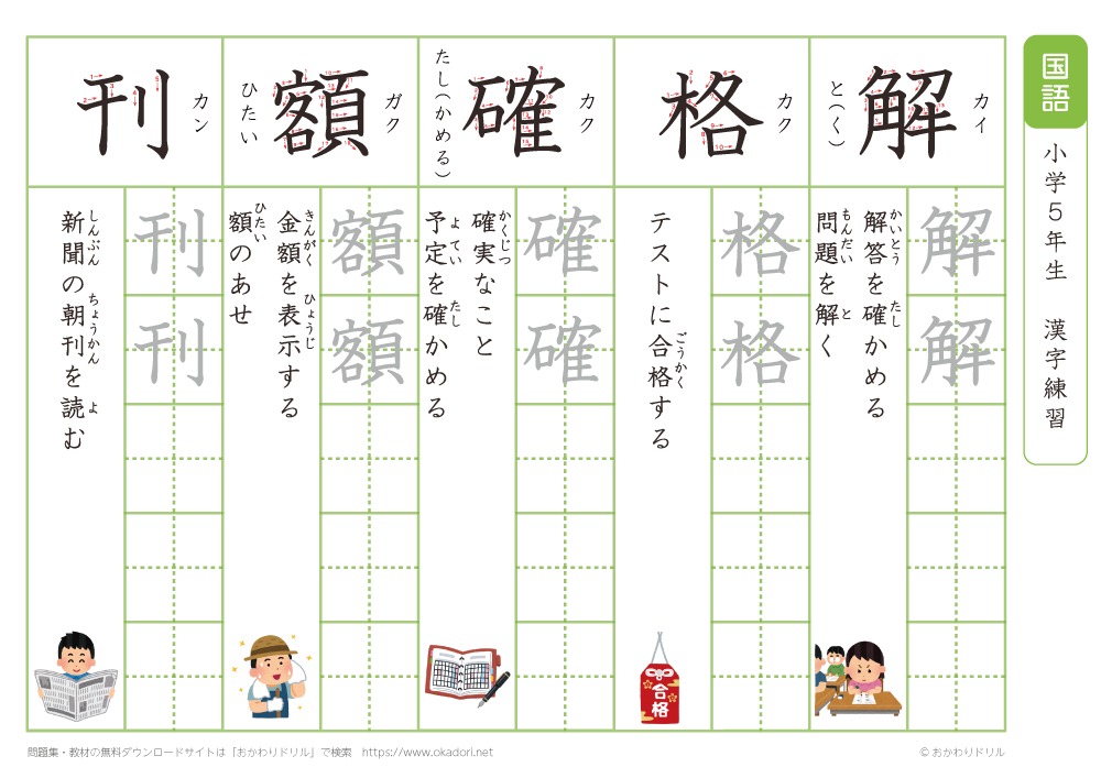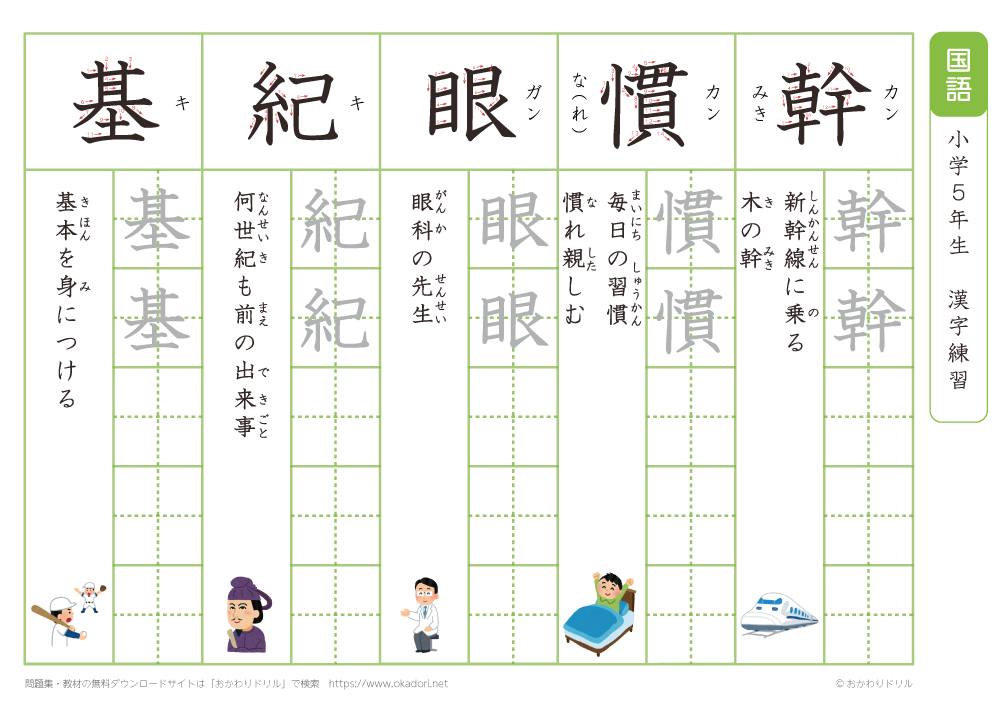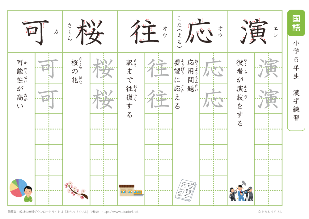 小学5年生の漢字の書き方の練習に、ぜひ利用して下さいね!